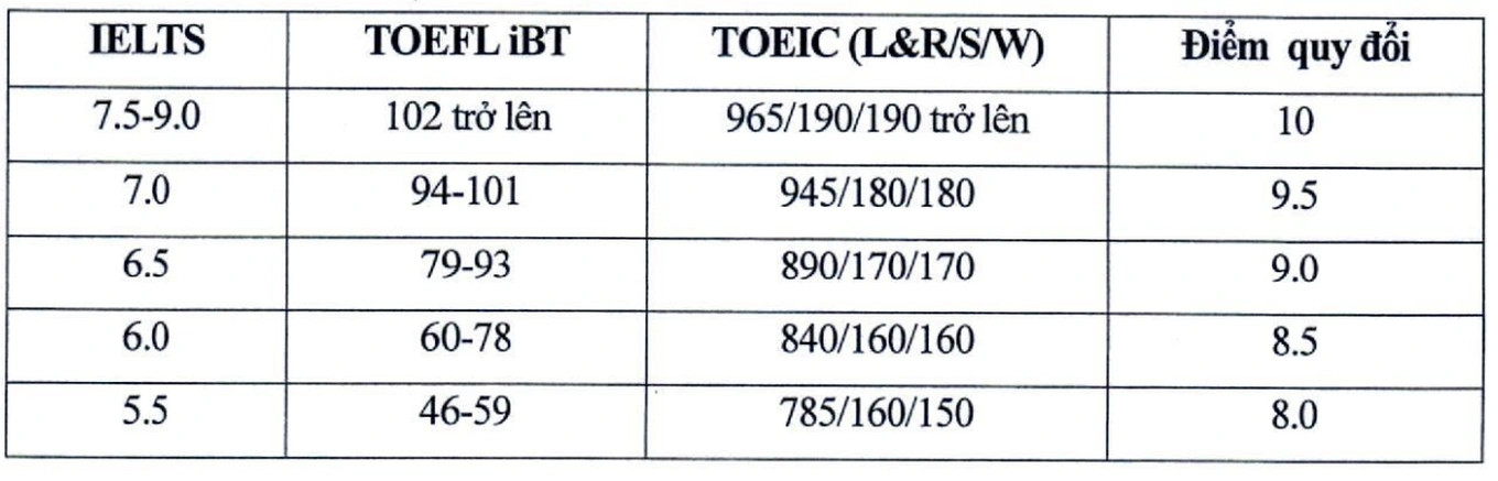 Điểm xét tuyển là tổng điểm hai môn thi tốt nghiệp THPT cùng điểm quy đổi chứng chỉ và điểm ưu tiên (nếu có).