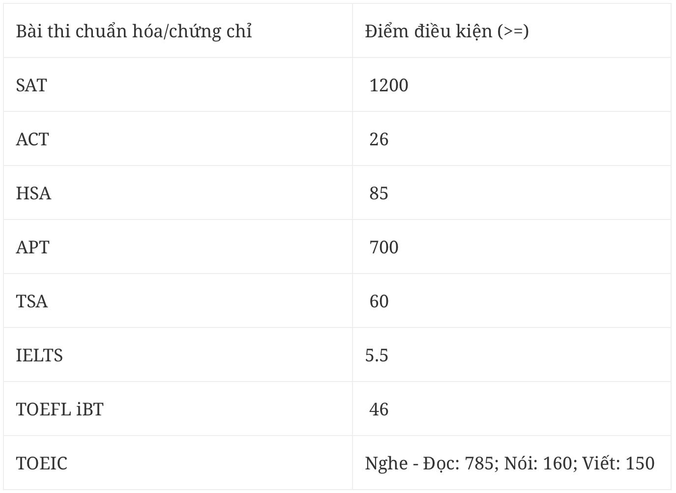 Điểm điều kiện đối với từng loại chứng chỉ như sau: