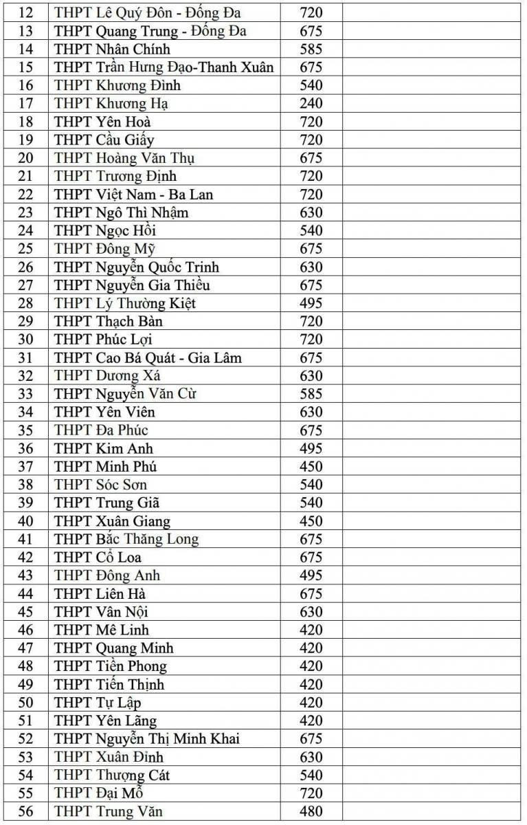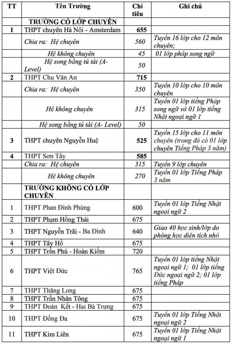 | Chỉ tiêu tuyển sinh vào lớp 10 các trường THPT ở Hà Nội năm 2021. |