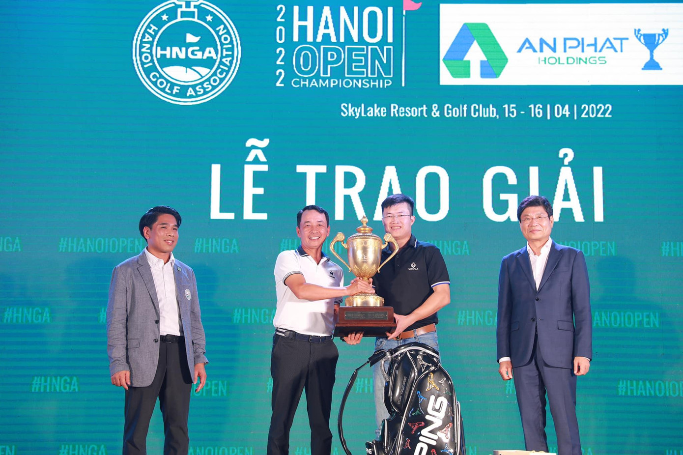 Sau 2 ngày tranh tài sôi nổi, giải golf Hà Nội mở rộng - An Phát Holdings Cup 2022 đã kết thúc tốt đẹp. Kết thúc vòng chung kết, hai golfer có kết quả tốt nhất giải: Mai Văn Lợi và Lý Quốc Huy, đều có cùng gross 72.