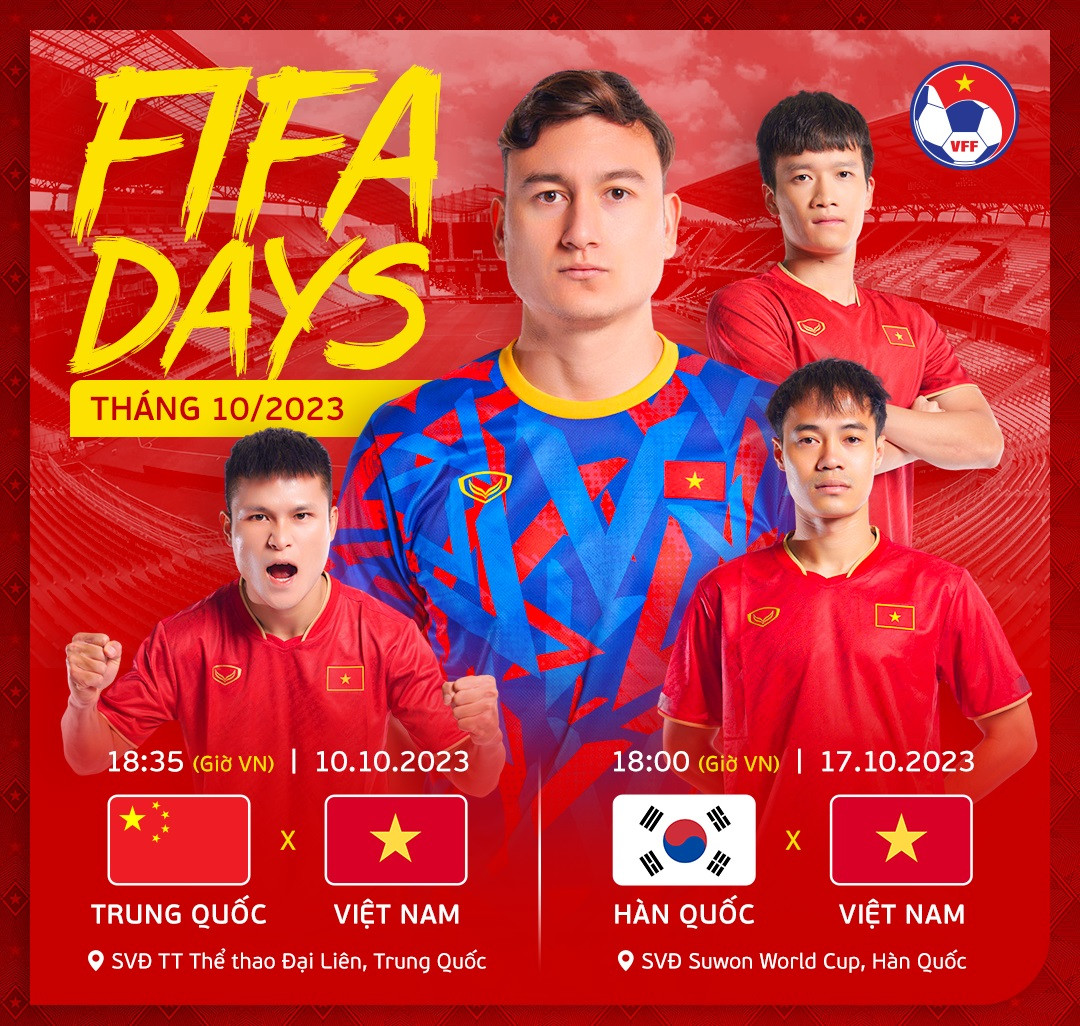 Lịch thi đấu chính thức của tuyển Việt Nam trong dịp FIFA Days tháng 10/2023
