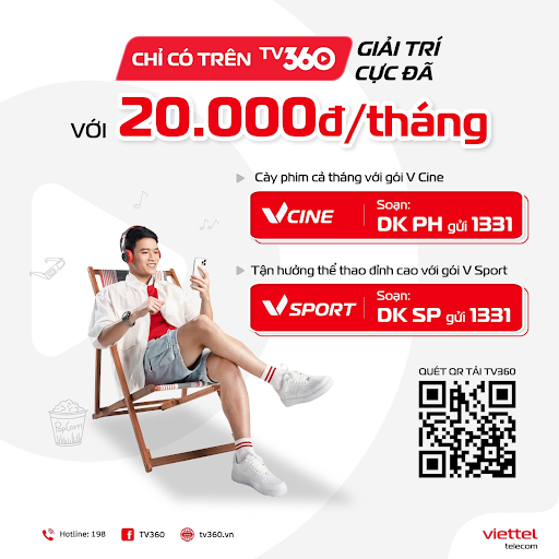 Song song với Vsport, TV360 cùng ra mắt gói VCine và ưu đãi với mức giá chỉ 20.000 đồng một tháng để xem phim miễn phí trên ứng dụng TV360 với data tốc độ cao không giới hạn.