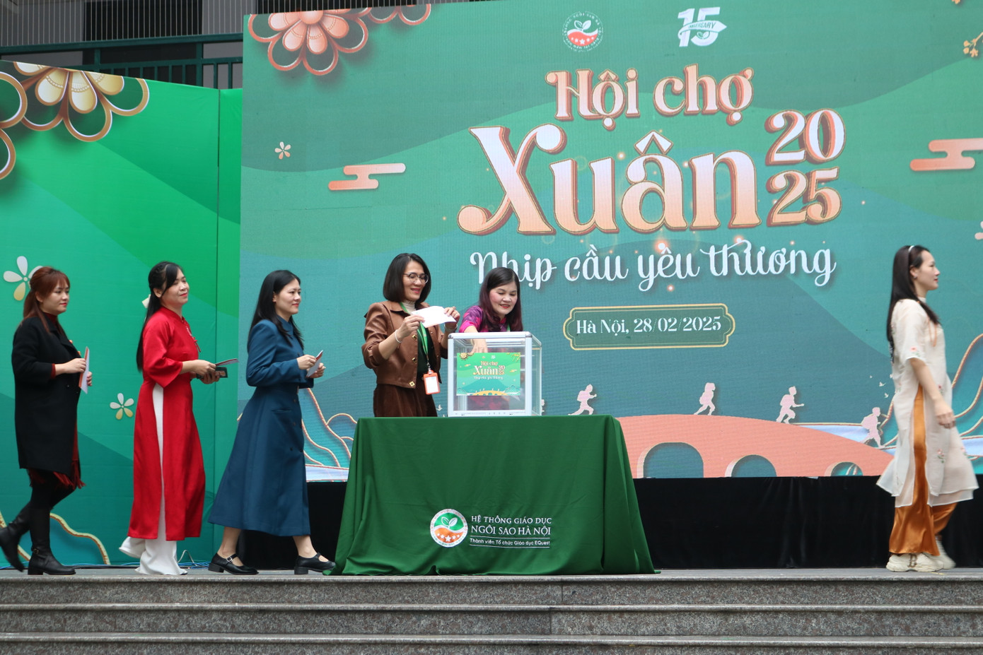 Phát biểu tại khai mạc Hội chợ Xuân, nhà giáo Khuất Thị Thanh Nhàn - Hiệu trưởng nhà trường nhấn mạnh ý nghĩa của chương trình - đây là hoạt động thường niên, nhằm quyên góp cho những dự án thiện nguyện lớn của nhà trường. Cô nhắc lại hành trình hơn 13 năm thực hiện công tác thiện nguyện đã góp phần mang yêu thương từ Ngôi Sao Hà Nội tới những học sinh có hoàn cảnh khó khăn, hỗ trợ những điểm trường cơ sở vật chất còn thiếu thốn, xây cầu vượt sông, chia sẻ cùng đồng bào vùng lũ lụt,...