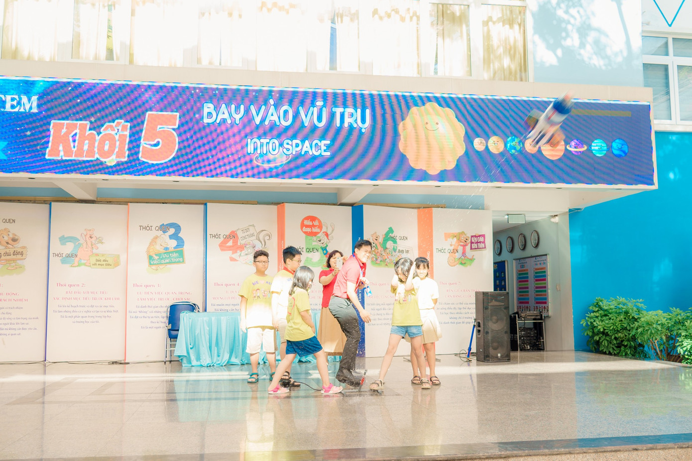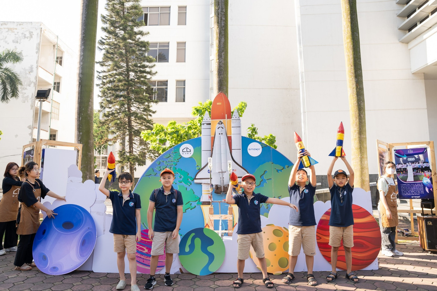 Tại trường Tiểu học Đoàn Thị Điểm, không khí thi đấu STEM cũng cực sôi nổi với sân chơi dành riêng cho tween khối 5, những bạn nhỏ có niềm đam mê với khoa học, công nghệ. Ngày hội STEM diễn ra trong vòng 2 ngày, dành cho các bạn học sinh khối 5 với chủ đề “Bay vào vũ trụ - Intro Space”.