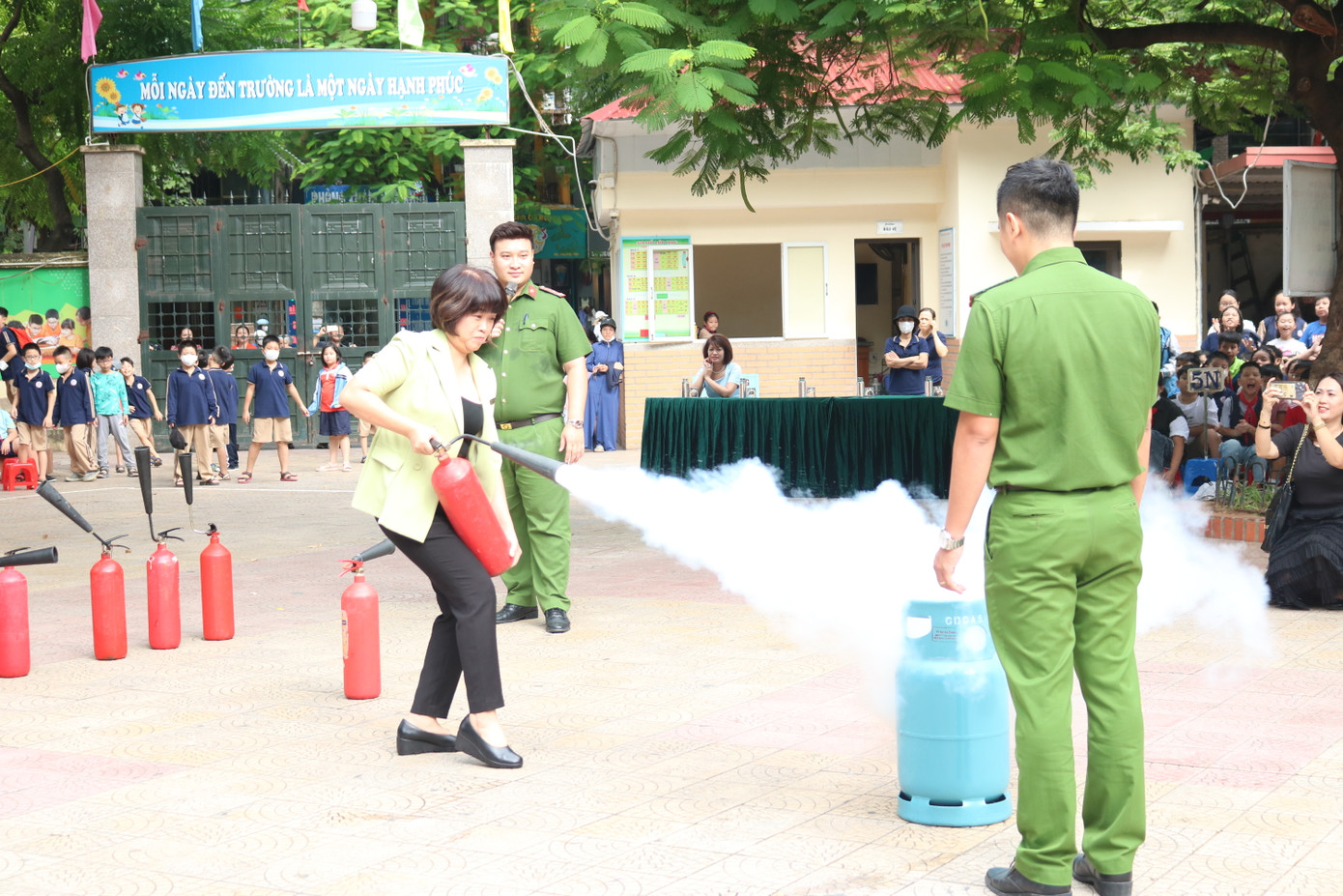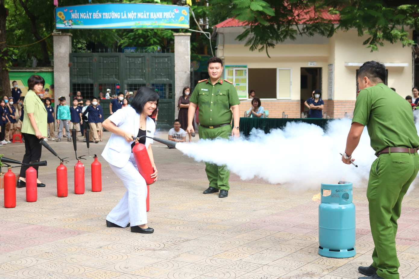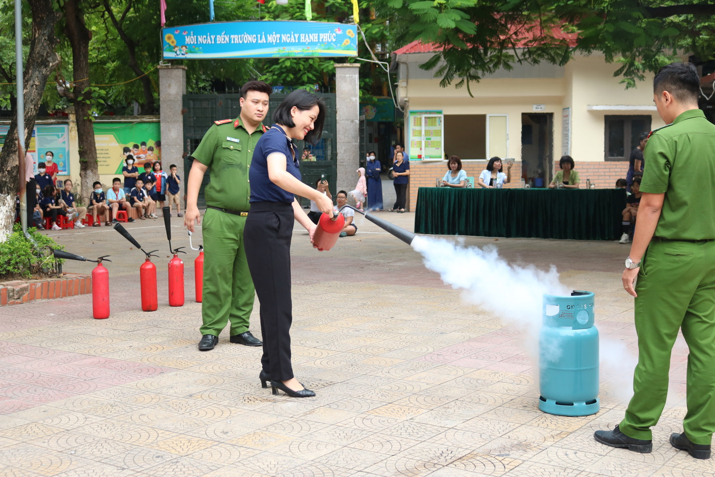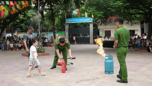 Phần thực hành kỹ năng sử dụng bình cứu hỏa là một trong những phần khiến tween hào hứng nhất. Phải tới 99% các bạn học sinh đều giơ tay xung phong lên sân khấu. Các chú công an dùng bình ga để tạo một đám cháy nhỏ để tween trực tiếp dập lửa bằng bình cứu hỏa. Mọi thao tác được hướng dẫn kỹ càng, lực lượng công an, thầy cô cũng ở cạnh các bạn học sinh trong quá trình thực hành để đảm bảo an toàn tuyệt đối.