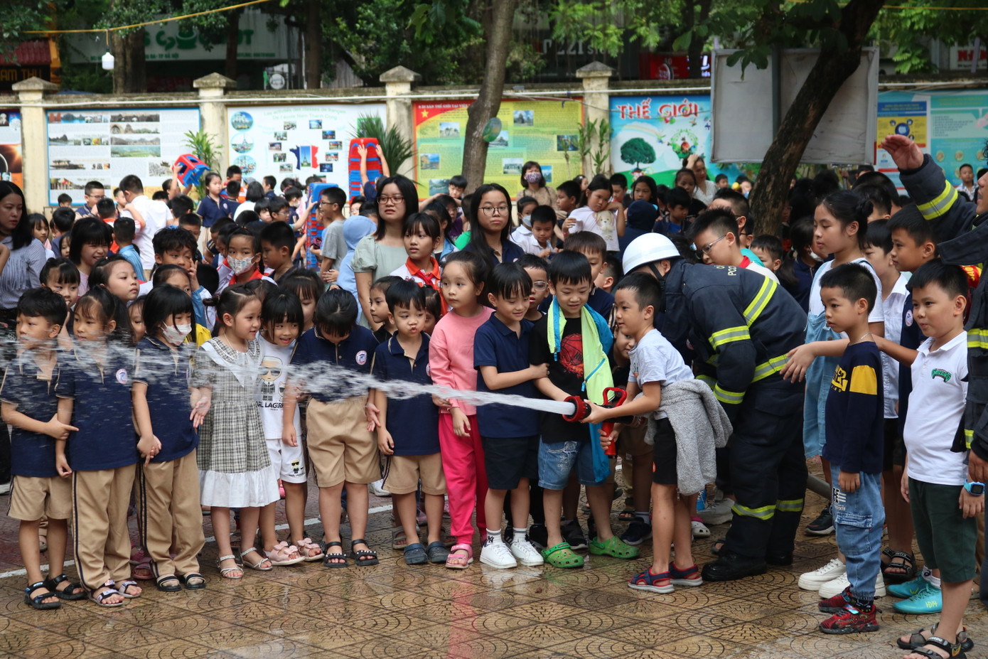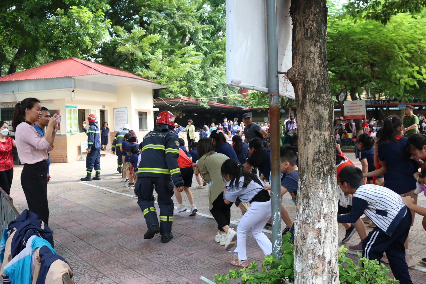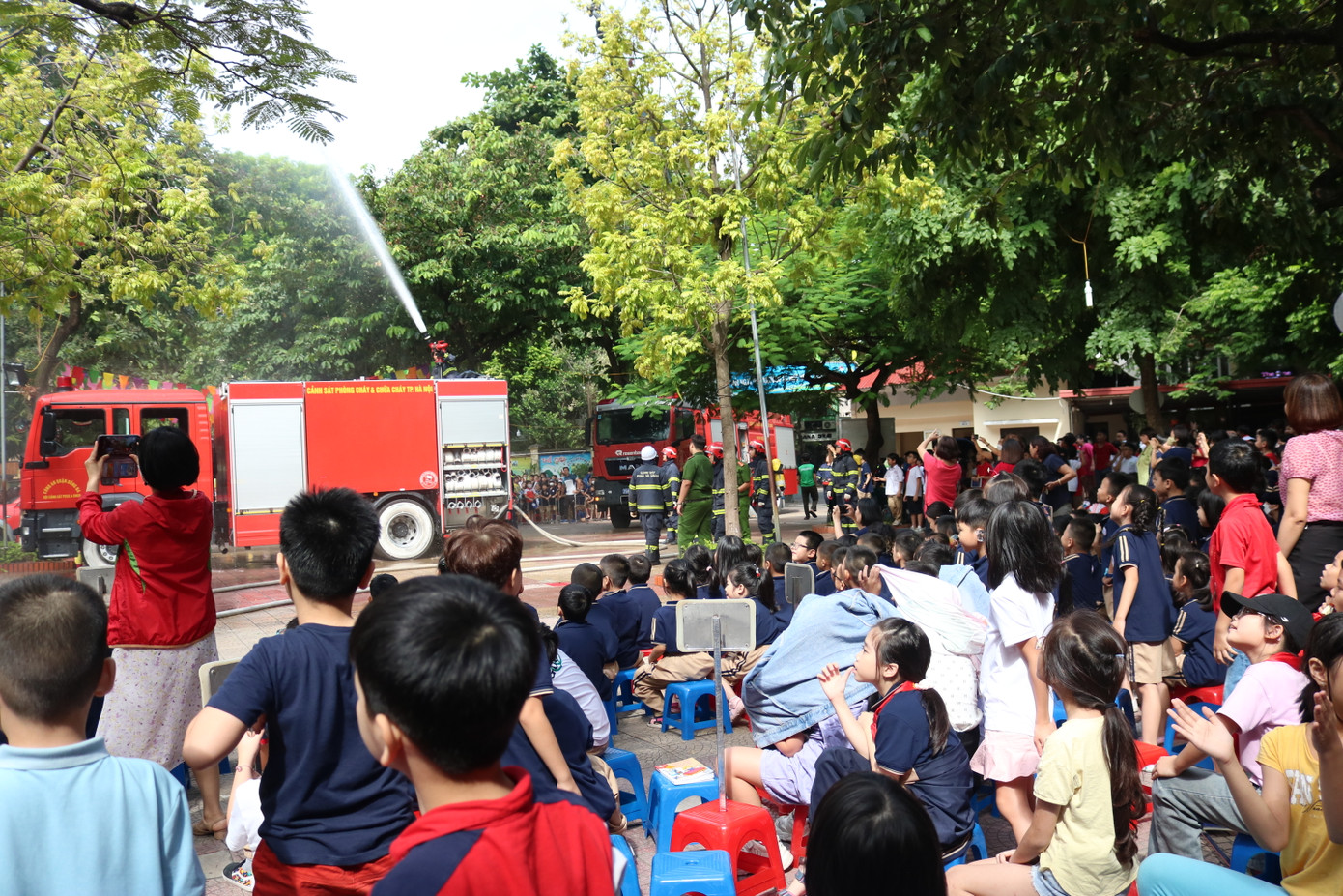 Số học sinh quá lớn, không phải bạn nào cũng có thể trực tiếp thao tác. Dù rất tò mò, cũng rất phấn khích muốn được thử cầm bình cứu hỏa hay vòi phun, nhưng tween vẫn kiềm chế, lắng nghe thầy cô và lực lượng lính cứu hỏa, công an, chỉ đứng quan sát ở khoảng cách an toàn.