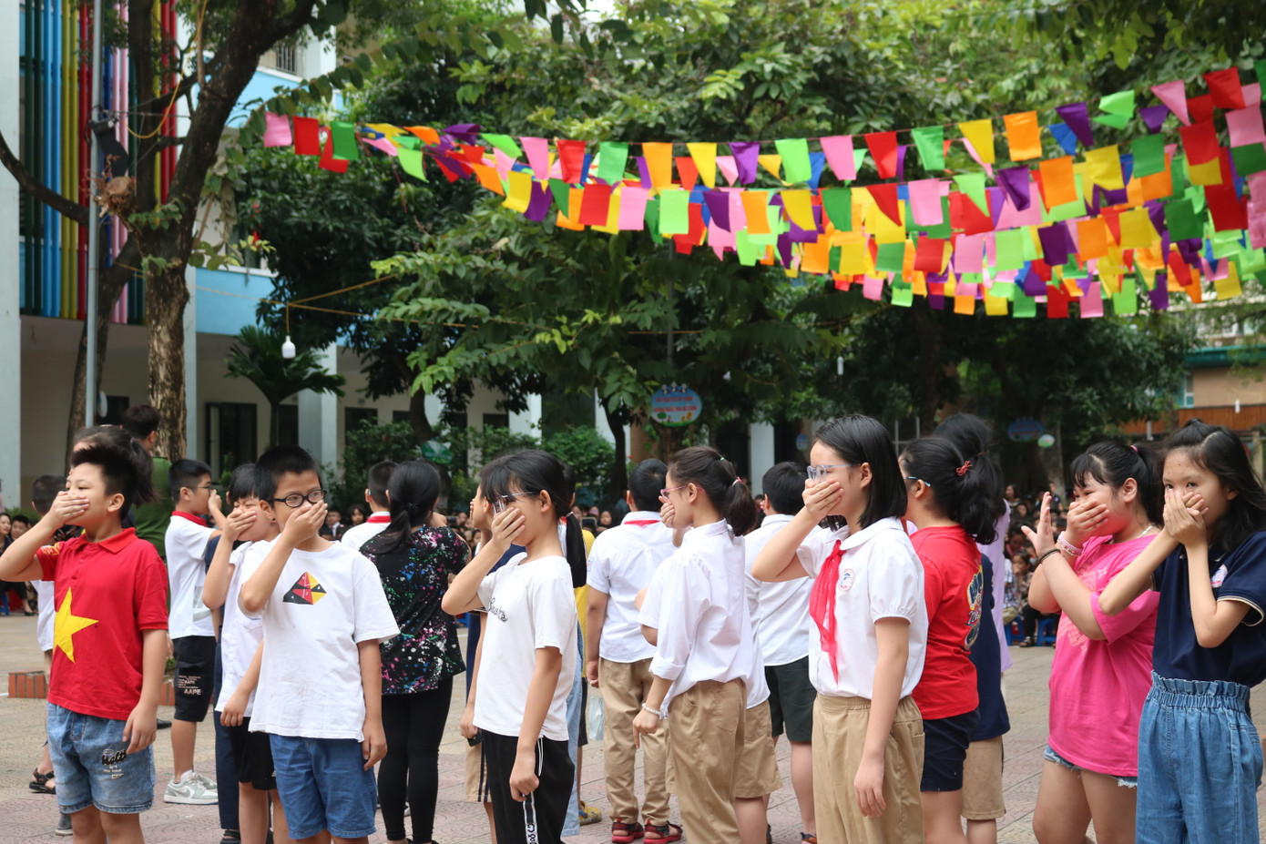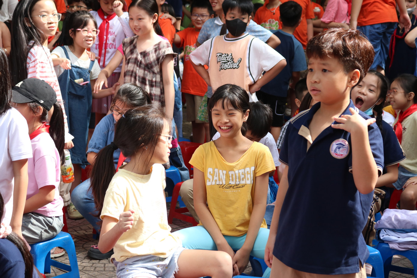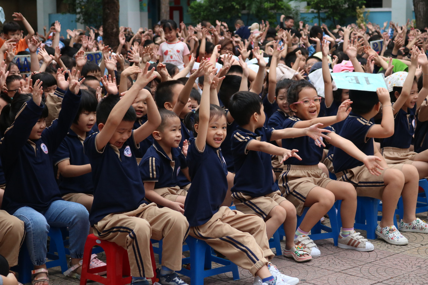 Cô Hiệu trưởng, Phó Hiệu trường cũng như các thầy cô trong trường cũng tham gia vào phần thực hành này. Thấy cô chủ nhiệm của mình "thị phạm" thành công, tween bên dưới không ngừng hò reo, chấm ngay 10 điểm.