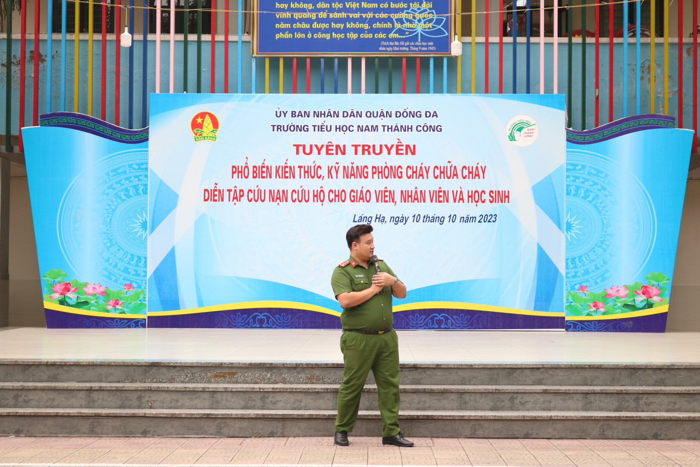Ngày 10/10, trường Tiểu học Nam Thành Công đã kết hợp với Phòng Cảnh sát Phòng cháy chữa cháy và Cứu hộ cứu nạn thành phố Hà Nội, công an quận Đống Đa tổ chức buổi tuyên truyền, phổ biến kiến thức cho giáo viên và học sinh về kỹ năng phòng cháy chữa cháy và diễn tập cứu hộ cứu nạn khi xảy ra sự cố.