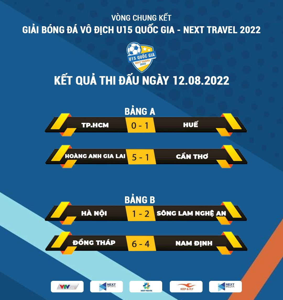 Tại bảng A, vào lúc 15h là cuộc đối đầu giữa U15 TP.HCM và U15 Huế trên sân Pleiku. Hai đội nhập cuộc với thế trận chặt chẽ, không có nhiều tình huống nguy hiểm được tạo ra trong 45 phút đầu tiên. Sang hiệp 2, bước ngoặt trận đấu đến ở phút 75, từ đường căng ngang bên cánh phải, đội trưởng Đăng Khoa ghi bàn cho U15 Huế, và đây cũng là bàn thắng duy nhất của trận đấu. Với kết quả này, U15 Huế xuất sắc đứng đầu bảng A dù họ nằm chung bảng với chủ nhà U15 Hoàng Anh Gia Lai vốn được đánh giá rất cao.