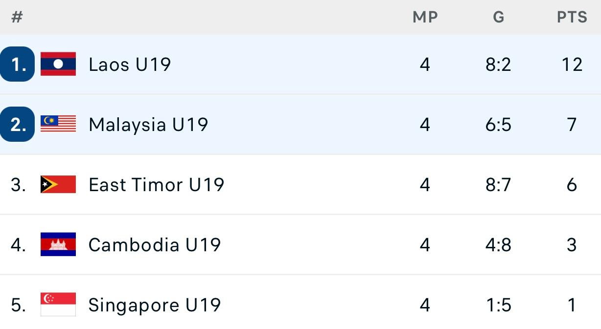 Tấn công yếu ớt, Malaysia đành chấp nhận thua 0-1. Như vậy, thật bất ngờ khi Lào là đội duy nhất toàn thắng ở vòng bảng giải U19 Đông Nam Á. Họ đá ít hơn Việt Nam 1 trận nhưng lại nhiều điểm hơn đội đứng đầu bảng A (12 so với 11 điểm). Trận đấu cùng giờ giữa Campuchia và Timor Leste kết thúc với tỷ số 1-4 nghiêng về Timor Leste, đồng nghĩa Campuchia xếp áp chót.