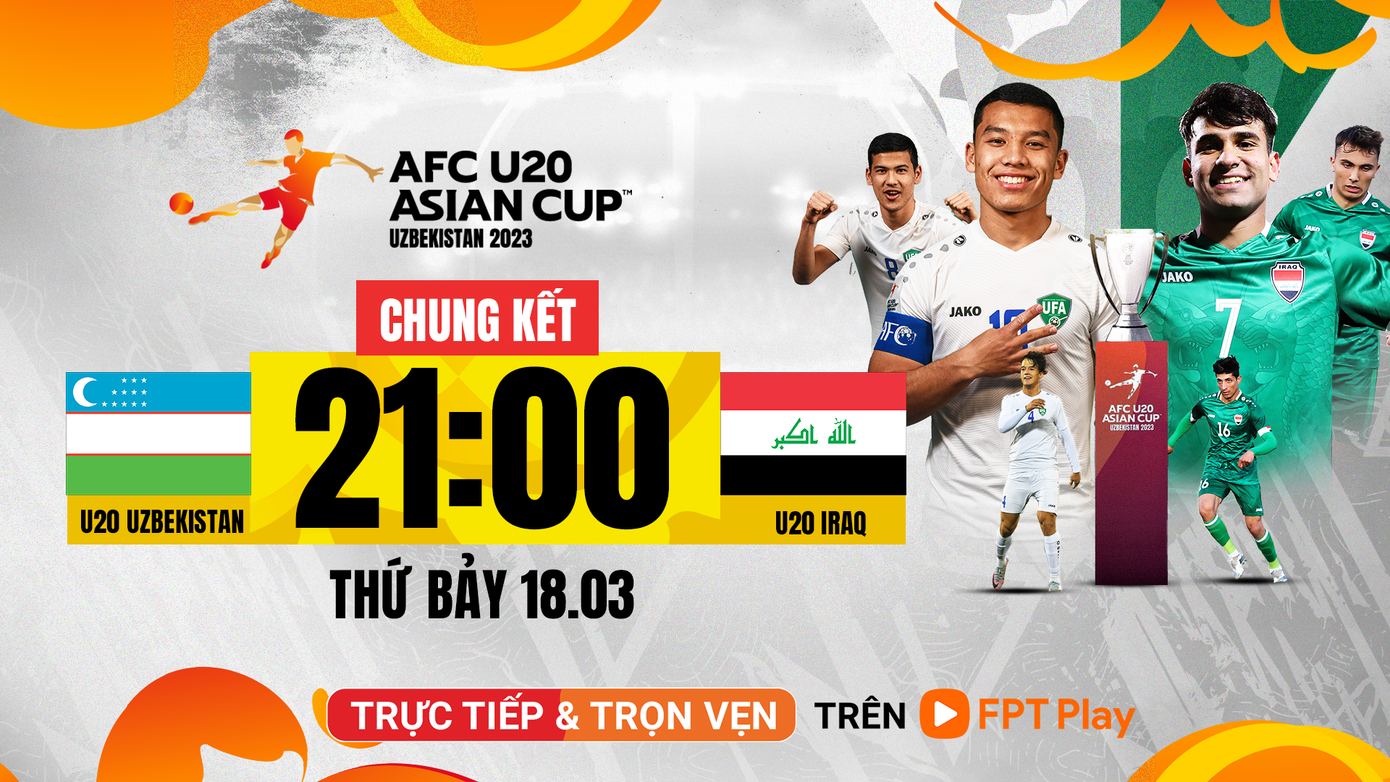Những diễn biến hấp dẫn của trận chung kết Cúp bóng đá U20 châu Á giữa U20 Uzbekistan và U20 Iraq sẽ được FPT Play phát sóng trực tiếp và trọn vẹn trên các nền tảng vào lúc 21 giờ ngày 18/03. Khán giả có thể đón xem trận đấu tại:
