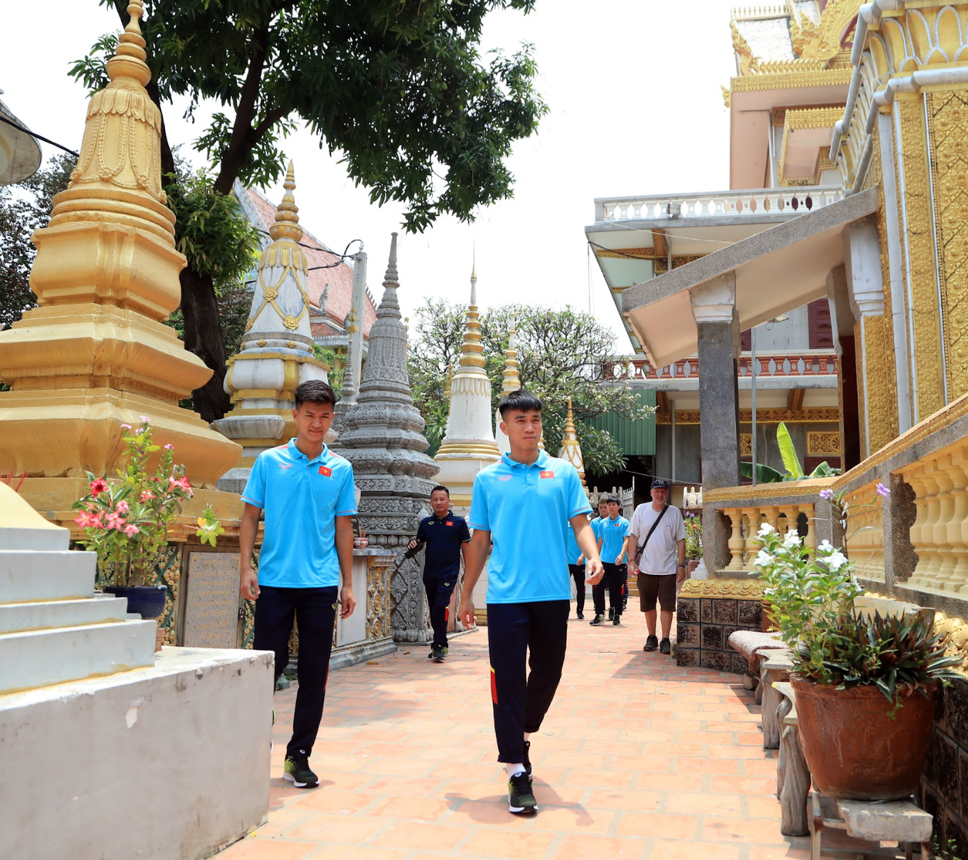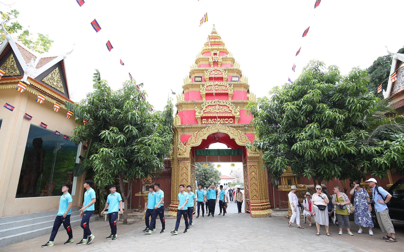 TPO - Sáng 28/4, đội tuyển U22 Việt Nam đã có buổi thăm quan chùa Wat Ounalom, thưởng lãm cảnh đẹp và cầu may mắn trước trận ra quân với U22 Lào ở bảng B, môn bóng đá nam SEA Games 32.