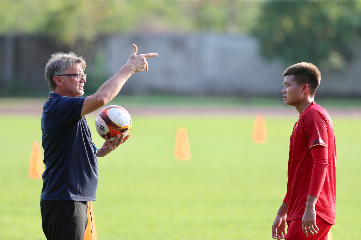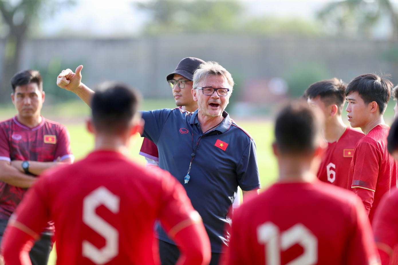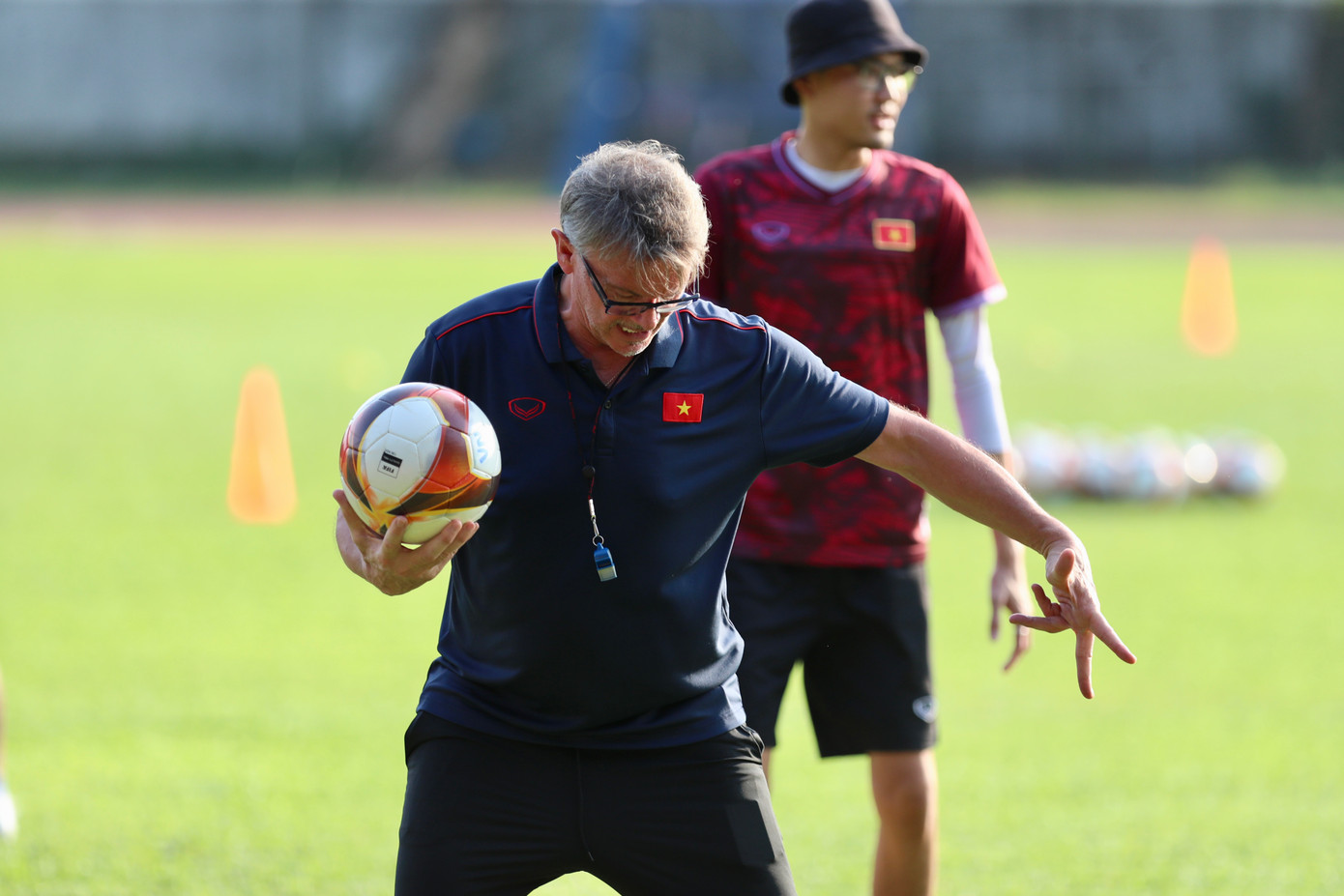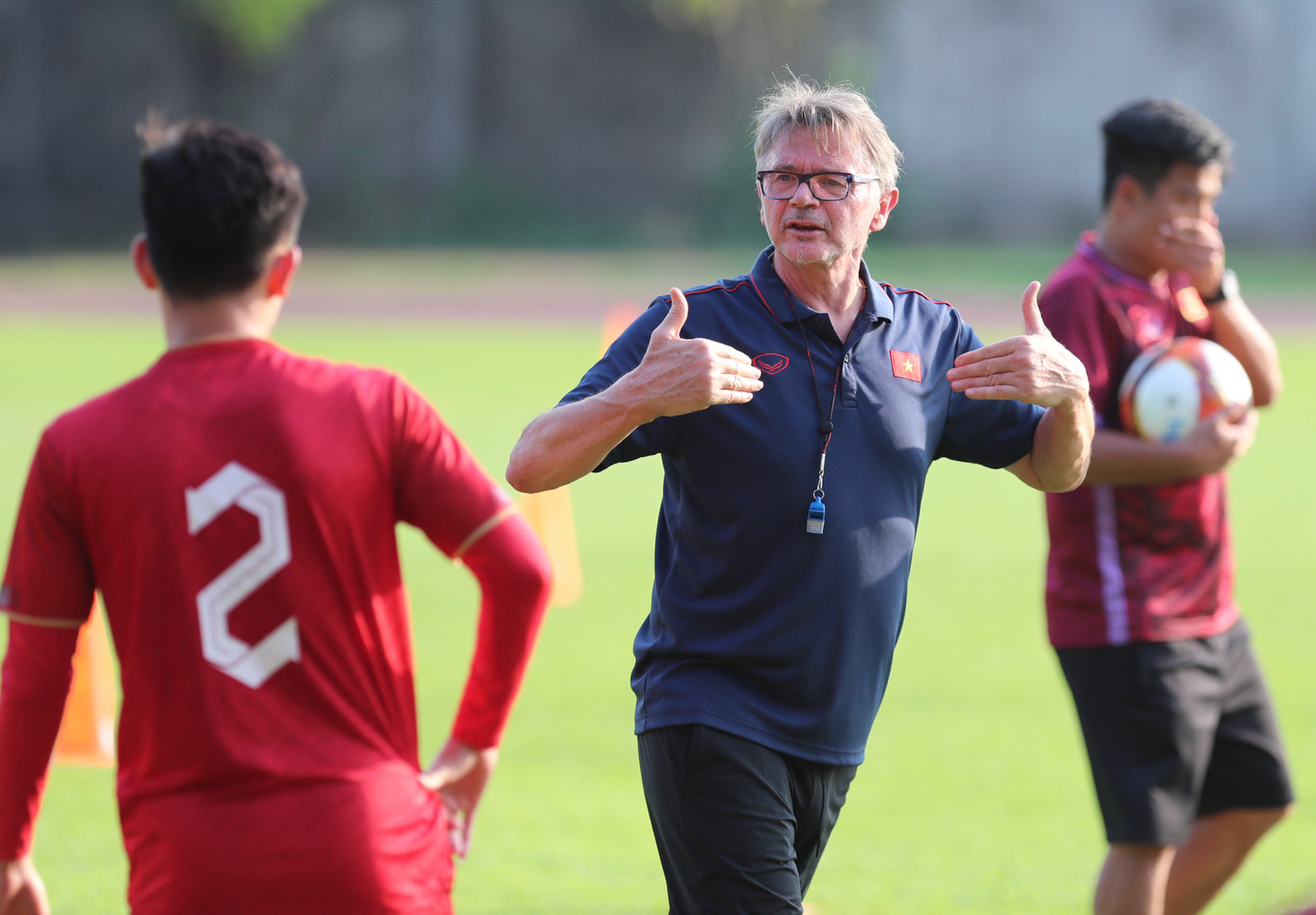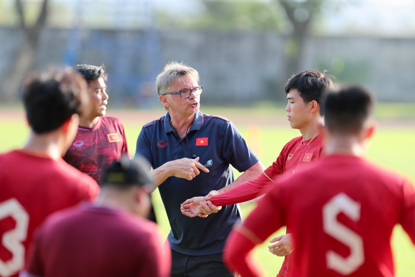 | Nhà cầm quân người Pháp tỏ ra chỉn chu và kỹ lưỡng trong từng nội dung và sẵn sàng dừng buổi tập để truyền đạt rõ hơn ý tưởng cho các học trò. |