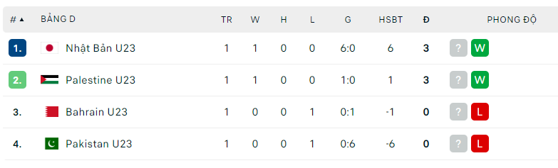 Bảng xếp hạng bảng C Vòng loại U23 châu Á 2024