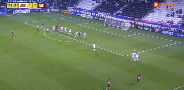 Những tưởng trận đấu khép lại với tỷ số hòa thì vào phút bù giờ thứ 13, chủ nhà đã ghi bàn định đoạt trận đấu. Từ quả treo bóng vào vòng cấm, Mohammad Al Mannai đánh đầu căng, khiến thủ môn U23 Jordan bất lực.