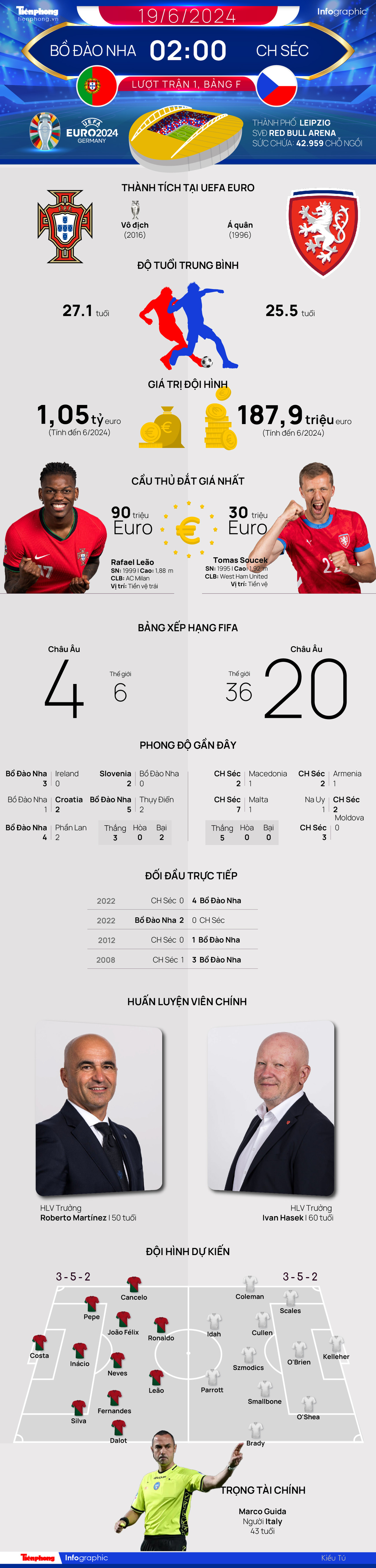 Google News UEFA EURO 2024: Tương quan đội hình trước trận Bồ Đào Nha vs CH Séc