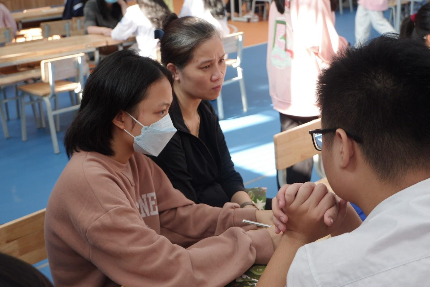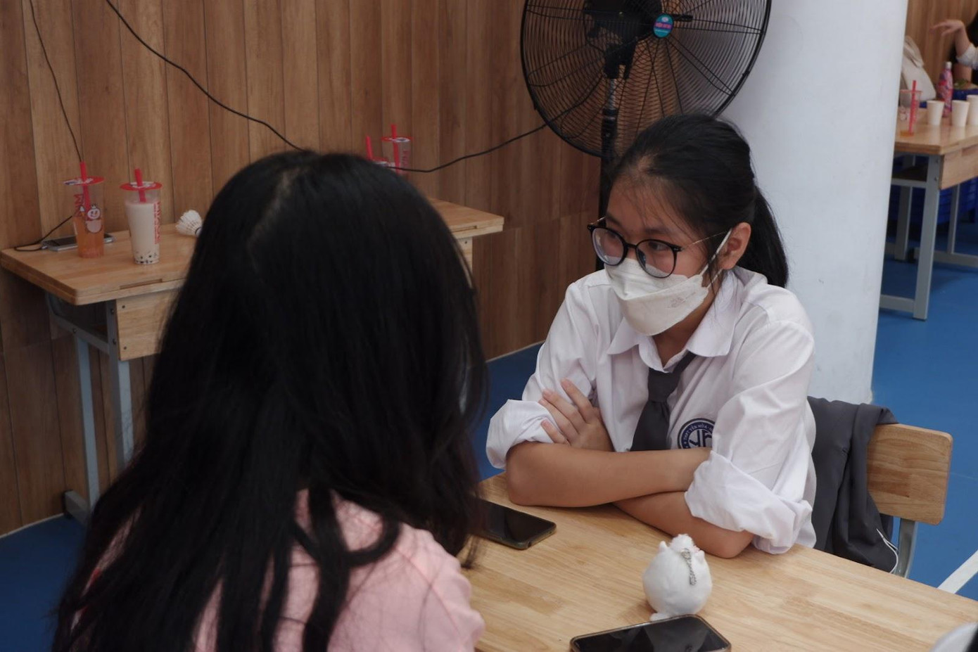 Minh Anh, học sinh lớp 9 trường THCS Nguyễn Trường Tộ chia sẻ: “Tại phòng 1v1, các anh chị diễn giả đã giúp mình lên thời gian biểu hợp lí để phân chia thời gian cho các môn học. Ngoài ra, các lời khuyên các anh chị dành cho mình cũng rất hữu ích để cân bằng thời gian cho các công việc khác".