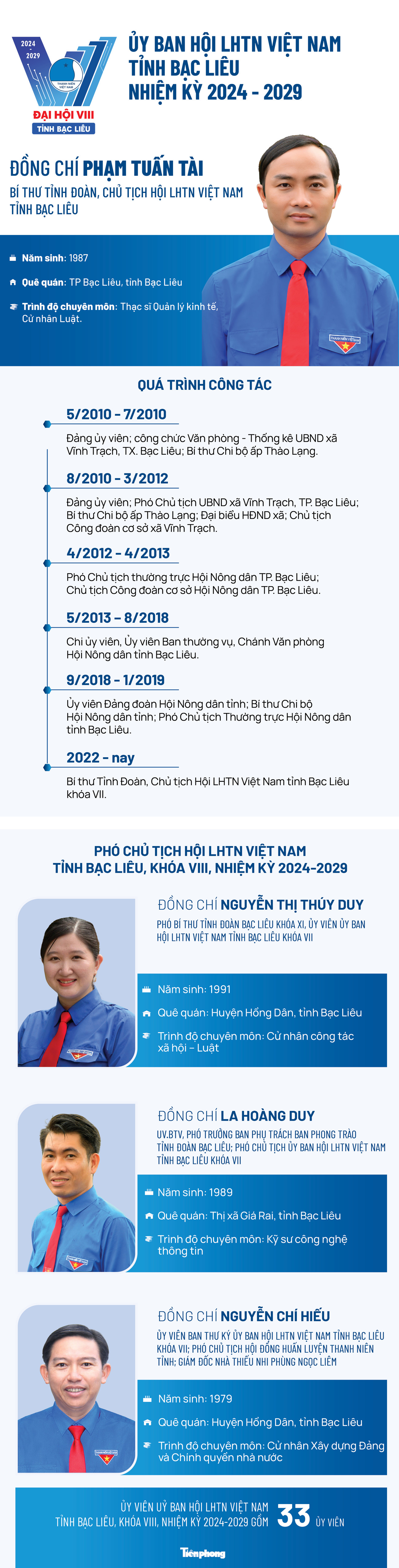 TPO - Đại Hội LHTN Việt Nam tỉnh Bạc Liêu khóa VIII, anh Phạm Tuấn Tài – Bí thư Tỉnh Đoàn đã tái đắc cử Chủ tịch Uỷ ban Hội LHTN Việt Nam tỉnh Bạc Liêu, nhiệm kỳ 2024 – 2029.