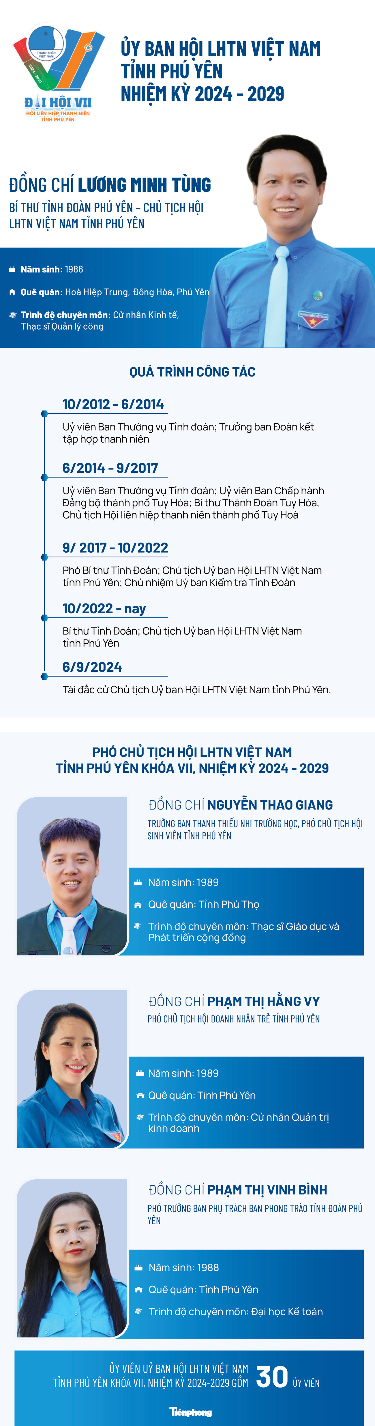 TPO - Đại Hội LHTN Việt Nam tỉnh Phú Yên khóa VII, đồng chí Lương Minh Tùng Bí thư Tỉnh Đoàn Phú Yên đã tái đắc cử Chủ tịch Uỷ ban Hội LHTN Việt Nam tỉnh Phú Yên, nhiệm kỳ 2024 - 2029.