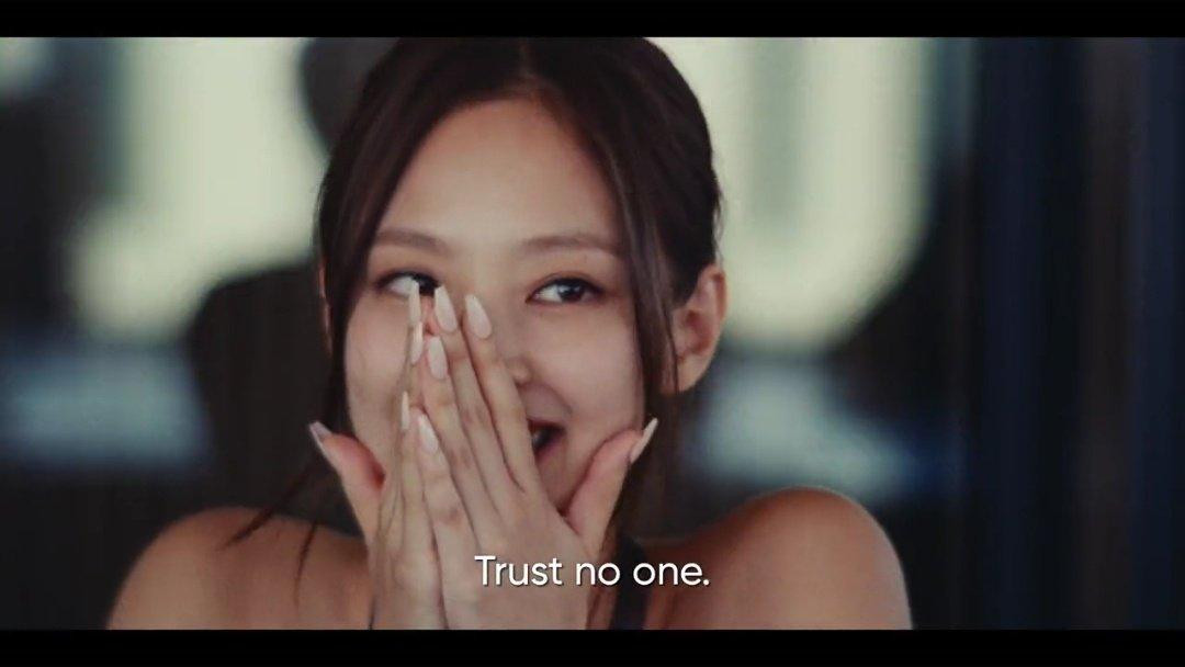| Phân đoạn Jennie đứng trong thang máy với nụ cười nhếch mép khiến fan tin rằng Jennie sẽ vào vai phản diện hoặc một cô gái tinh quái trong The Idol. |