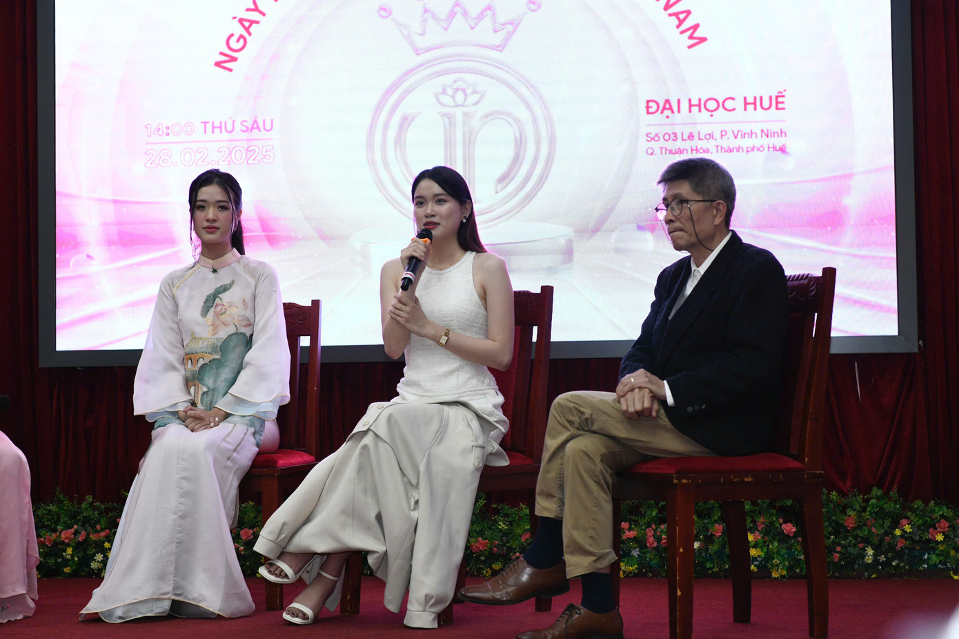 TS Đỗ Thị Xuân Dung cho biết Đại học Huế tự hào là một trong những cơ sở giáo dục có nhiều nữ sinh viên xinh đẹp, duyên dáng và tài năng. Nhiều nữ sinh Đại học Huế đã ghi dấu ấn tại các đấu trường nhan sắc lớn như người đẹp Phạm Thị Phương Trinh - top 35 cuộc thi Hoa hậu Việt Nam 2022, người đẹp Hồ Thị Yến Nhi - top 20 cuộc thi Hoa hậu Việt Nam 2022.