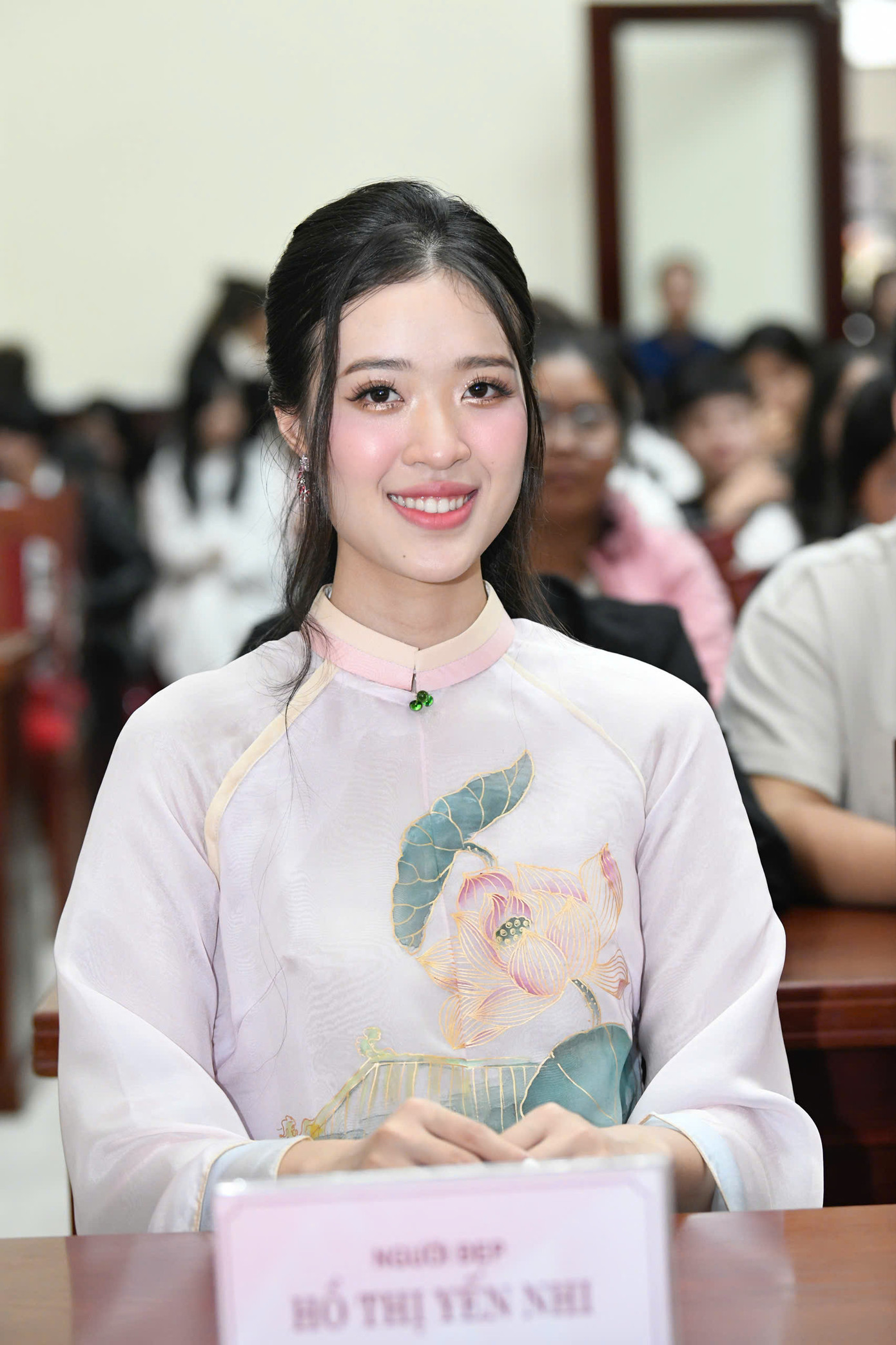 Theo Yến Nhi, vẻ đẹp không chỉ là nhan sắc bên ngoài mà còn là tri thức, sự tử tế, nhân ái. “Được ngồi đây chia sẻ với các bạn sinh viên là điều tự hào của tôi. Tôi vô cùng biết ơn hành trình Hoa hậu Việt Nam năm đó đã giúp có Yến Nhi ngày hôm nay”, cô nói.