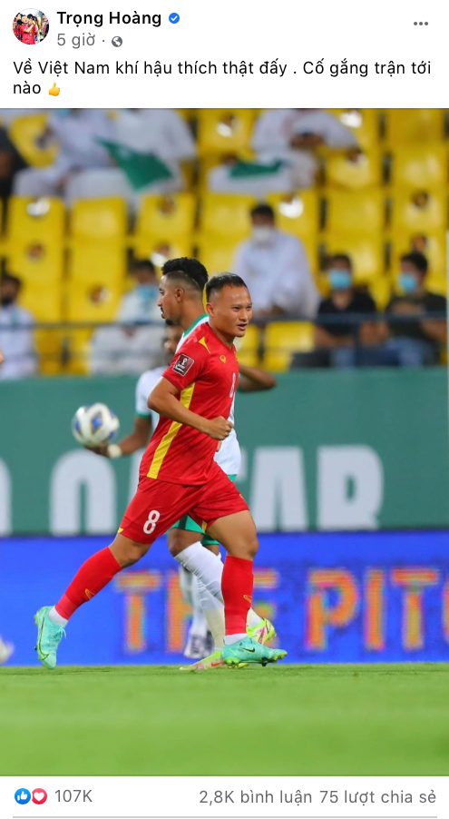 Mới đây, trên Facebook cá nhân, cầu thủ Nguyễn Trọng Hoàng đã đăng tải hình ảnh của anh kèm dòng trạng thái: “Về Việt Nam khí hậu thích thật đấy, cố gắng trận tới nào”. Bài đăng nhanh chóng nhận được đông đảo sự chú ý từ người hâm mộ cũng như cộng đồng mạng. Ở phần bình luận, Duy Mạnh và Văn Hậu đã để lại lời nhắn nhủ cũng như động viên nam cầu thủ thuộc CLB Viettel.