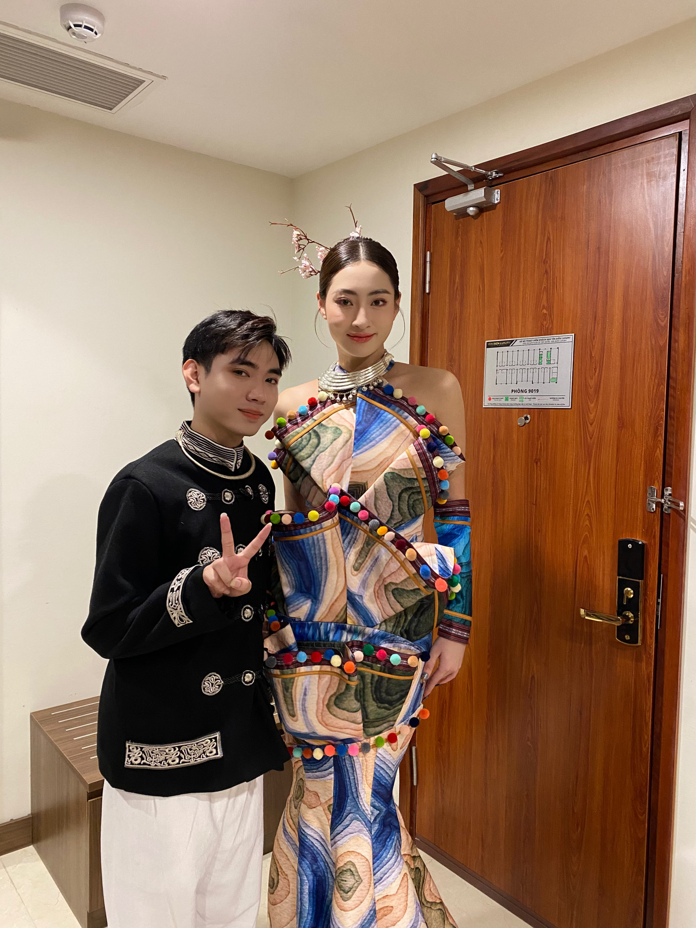 Trước đó, bộ “Múa điệu xòe hoa” – từng lọt Top 40 National Costume của Hoa hậu Hoàn vũ Việt Nam – cũng để lại nhiều dấu ấn. Thiết kế này không chỉ được trình diễn trên sân khấu quốc gia mà còn quay về với quê hương Yên Bái, xuất hiện trong một show diễn tại Bảo tàng tỉnh như một lời tri ân với vùng đất đã chắp cánh cho đam mê thời trang.