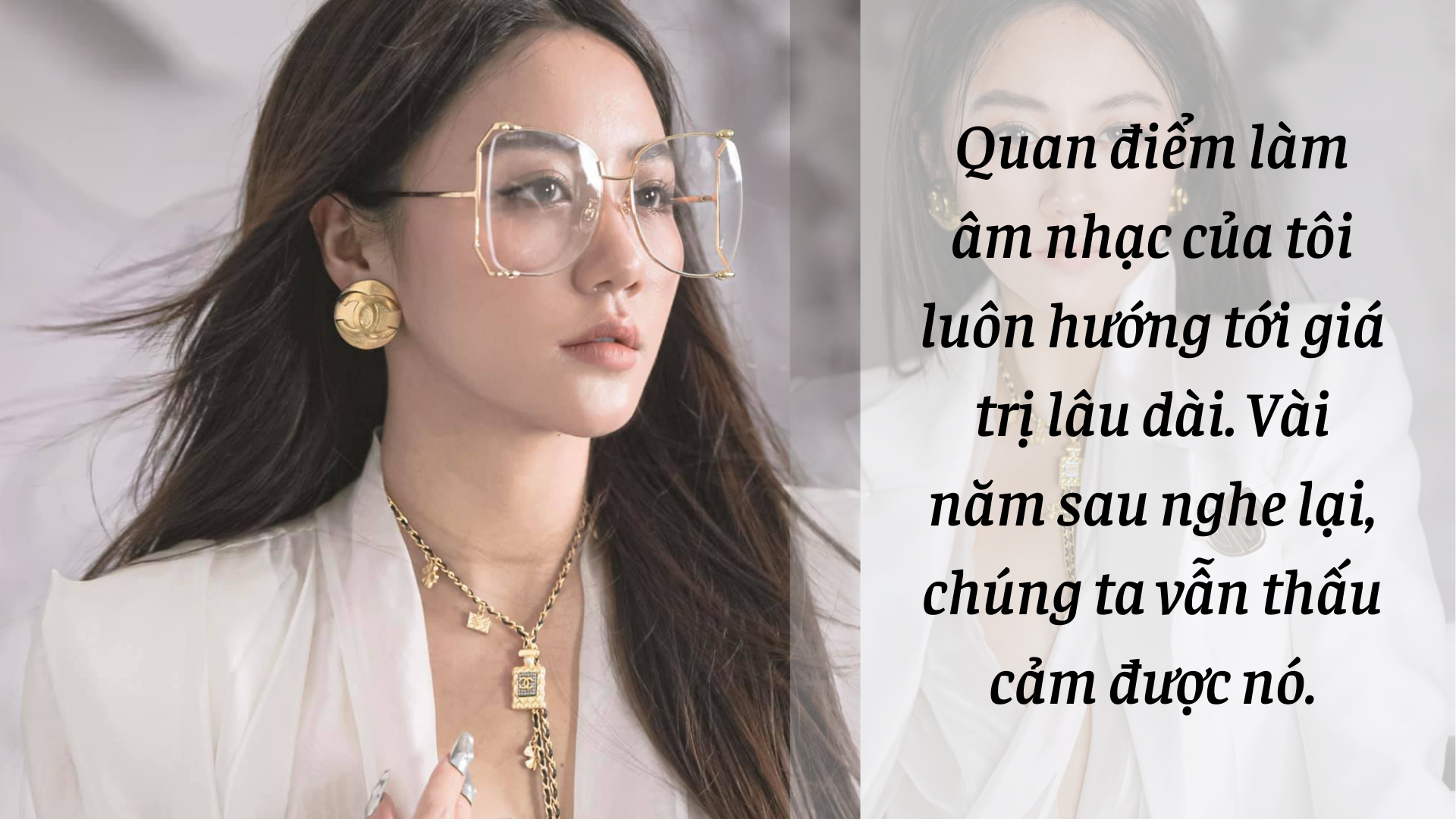 Quan điểm âm nhạc của tôi luôn hướng tới giá trị lâu dài. Khi một sản phẩm ra đời, tôi muốn nó có giá trị sâu sắc nhất định, theo dạng “mưa dầm thấm lâu”. Vài năm sau nghe lại, chúng ta vẫn cảm nhận được giá trị của nó. May mắn nếu bài nào cũng được hit thì chắc chắn tôi sẽ thấy vô cùng hạnh phúc.