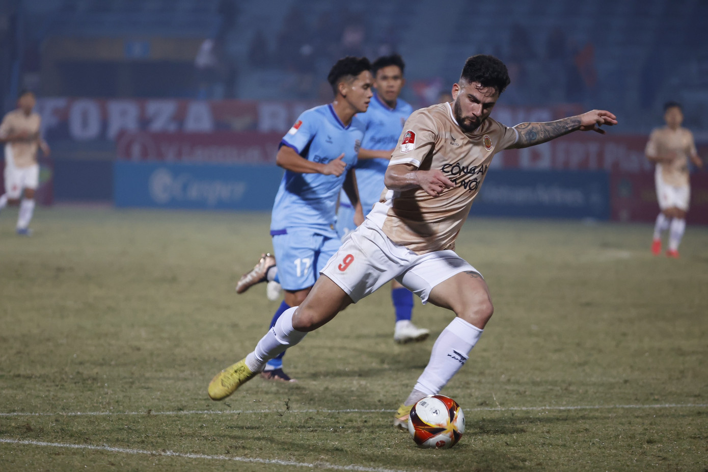 41': Một loạt đường phối hợp nhỏ giữa Văn Thanh, Quang Hải được thực hiện. Và họ đã tạo ra một loạt sóng gió. Nhưng không cú dứt điểm nào được Junior hay Văn Thanh thực hiện đi chính xác. Thước ngắm của Công an Hà Nội cũng gặp vấn đề.
