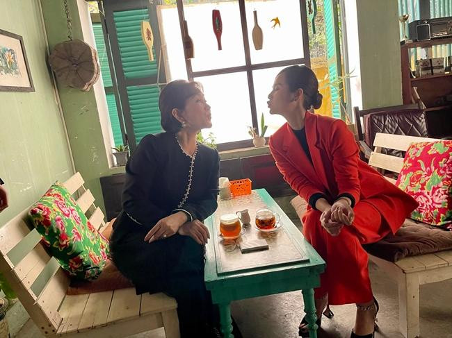 | NSND Minh Hòa và Huyền Lizzie rất thân thiết trong hậu trường. |
