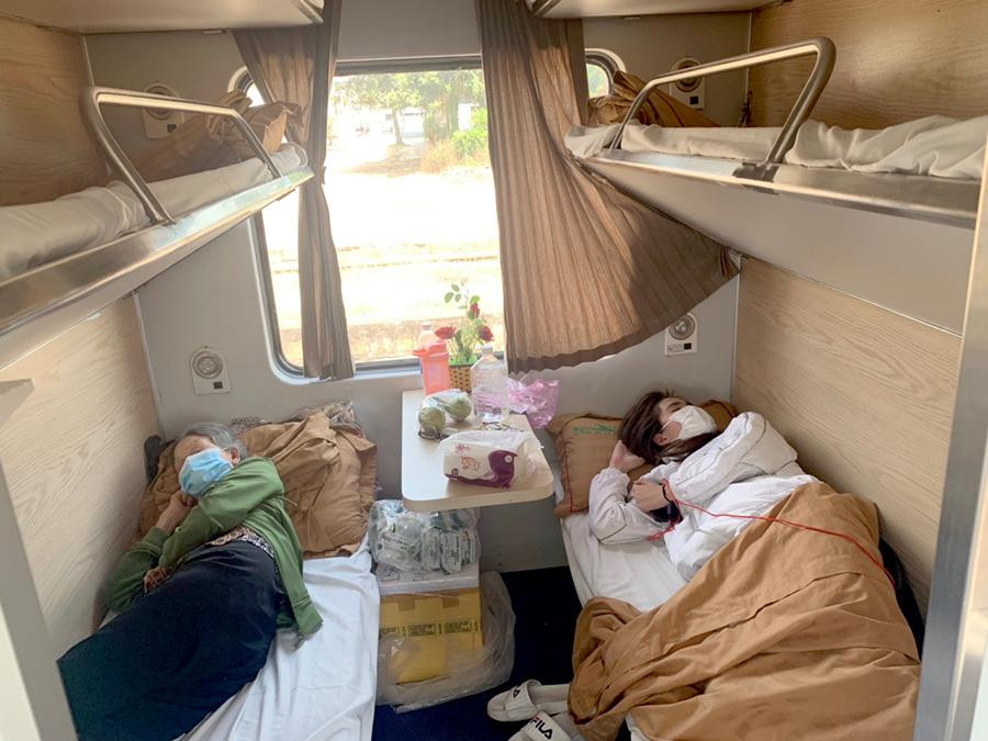 Trên tàu, hành khách được xếp vị trí ngồi giãn cách để hạn chế tiếp xúc, giảm nguy cơ lây nhiễm dịch COVID-19.