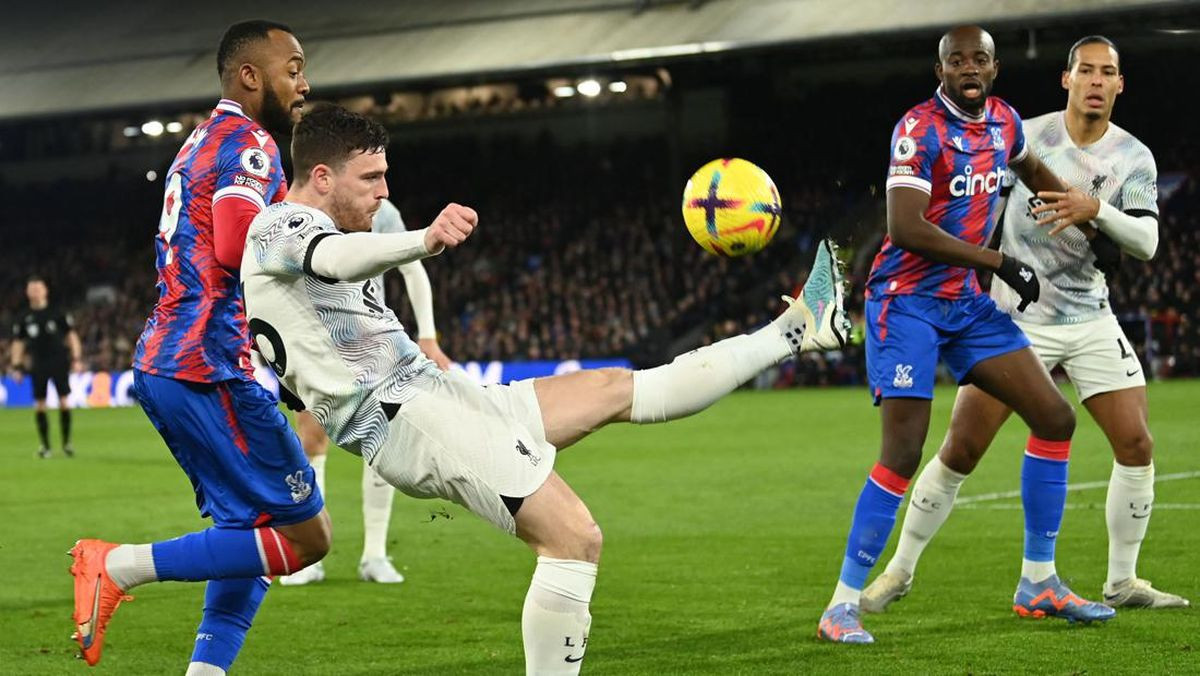 Đội chủ nhà Crystal Palace thậm chí còn suýt nữa có bàn thắng mở tỷ số sau sai lầm của Alexander-Arnold ở phút 13. Tuy nhiên, cú dứt điểm không thắng được thủ môn Alisson. Những phút cuối hiệp 1, hàng thủ Liverpool thi đấu xộc xệch. Lại là sai lầm của Alexander-Arnold tạo điều kiện cho Mateta dứt điểm nguy hiểm ở phút 41. Nhưng đen đủi cho đội chủ nhà là bóng lại tìm đến xà ngang.