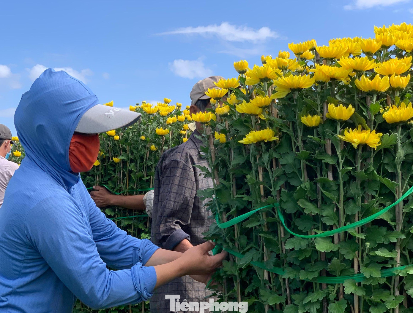 | Phần lớn hoa cúc tại Ninh Giang đã được thương lái đặt cọc. Ảnh Thục Hiền |