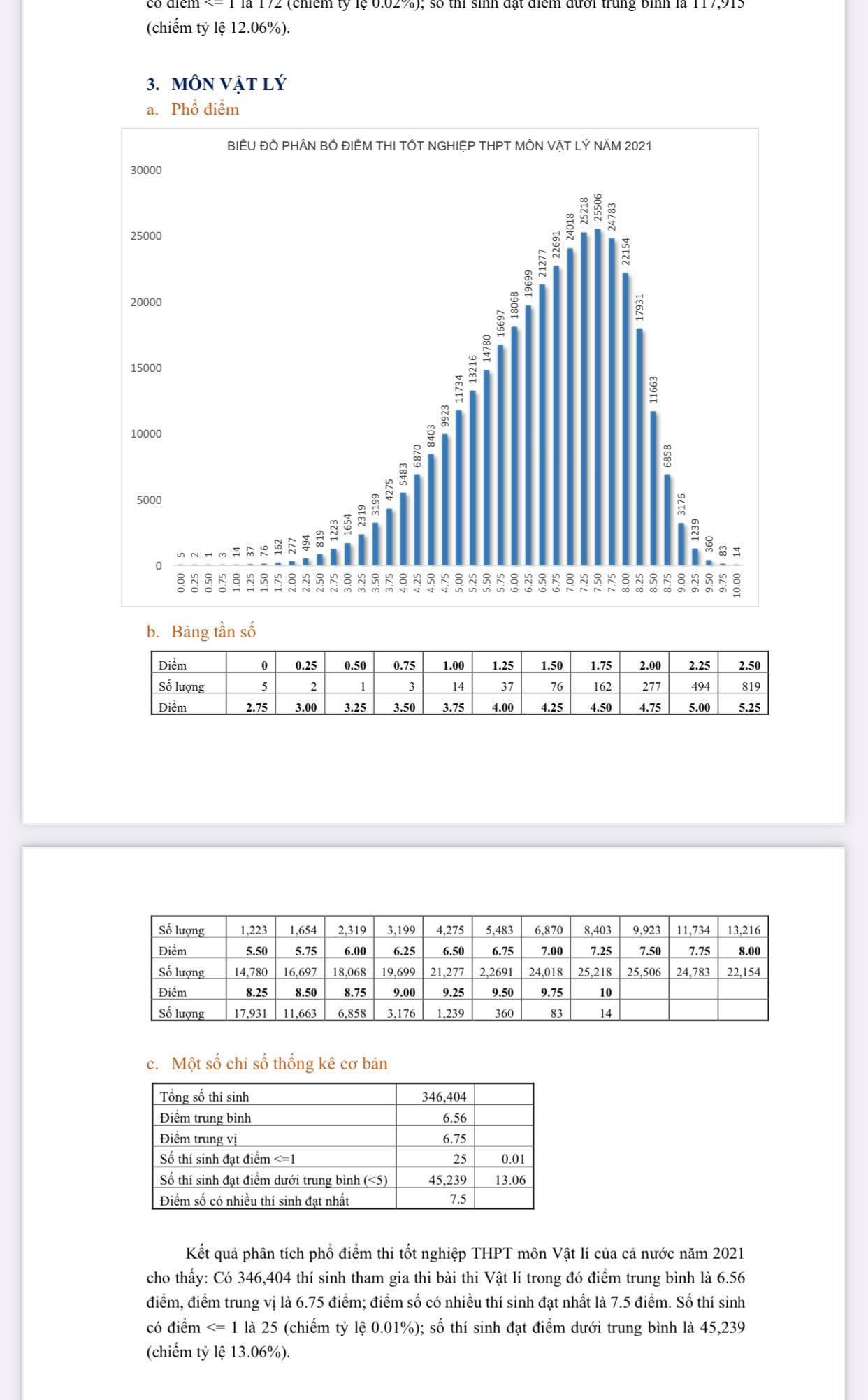 Kết quả điểm thi, phổ điểm cho thấy môn Vật lý có sự phân hoá tốt.