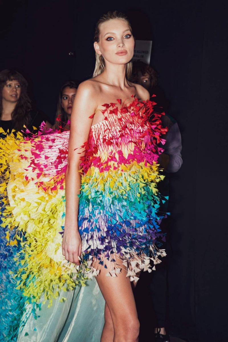 Người trình diễn thiết kế này là siêu mẫu đình đám Elsa Hosk, người mẫu Thuỵ Điển và là cựu Thiên thần Victoria’s Secret. Cô cao 1m77, bắt đầu sự nghiệp người mẫu từ năm 14 tuổi, và thời điểm Elsa trình diễn cho show của NTK Công Trí, cô đã 30 tuổi, nhưng nhan sắc và thần thái vẫn cực kỳ đỉnh.
