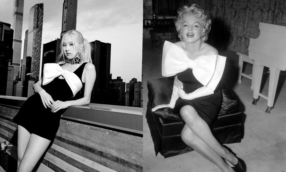 Bởi cách đây hàng chục năm, huyền thoại điện ảnh Marilyn Monroe đã từng ghi dấu ấn với một chiếc váy đen ôm sát với nơ trắng khổng lồ trước ngực. Marilyn Monroe nổi tiếng thế nào thì ai cũng biết và bộ váy Rosé mặc tại Met Gala 2021 được xem là lấy cảm hứng từ ngôi sao huyền thoại này.