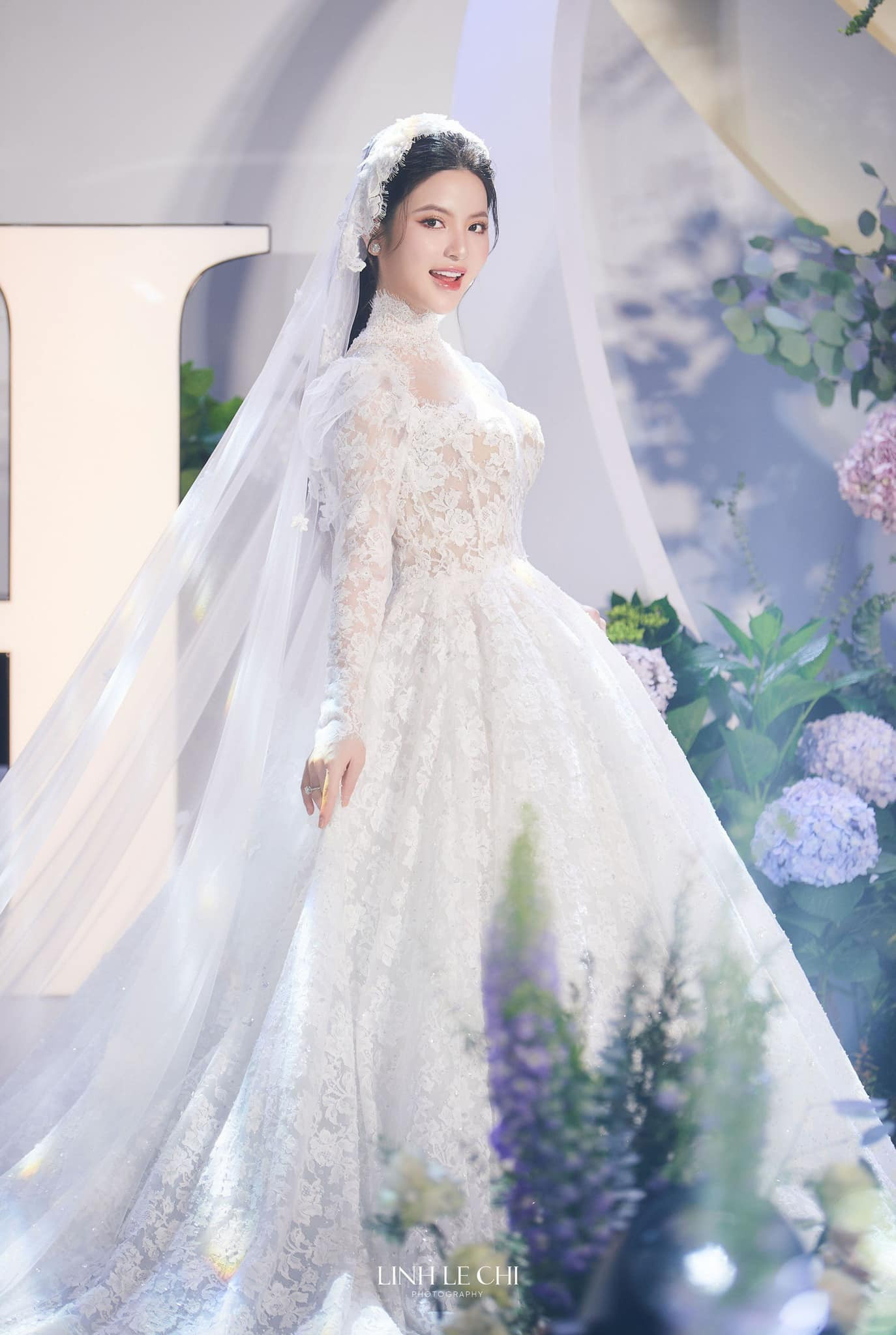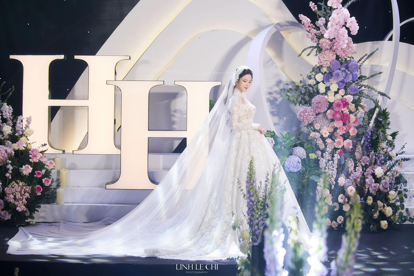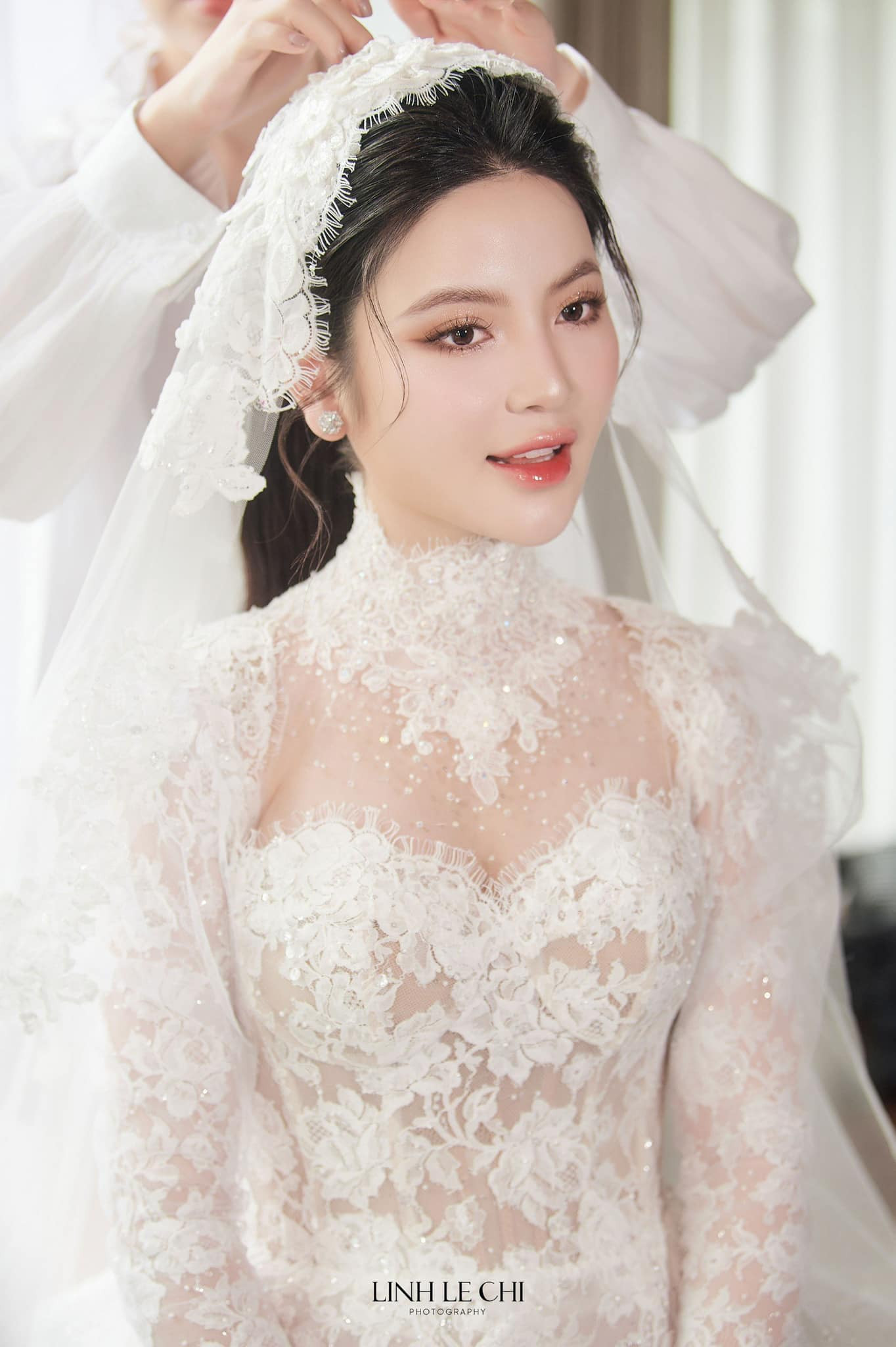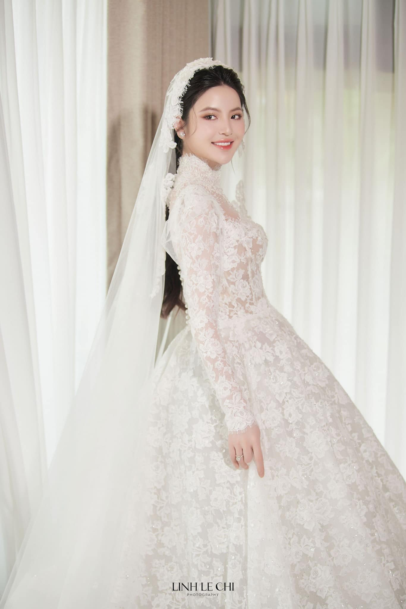 HHTO - Bộ váy cưới ren kèm voan dài mà Chu Thanh Huyền mặc trong ngày cưới ở quê nhà Quang Hải khiến nhiều người gợi nhớ đến những nàng dâu Hoàng gia.