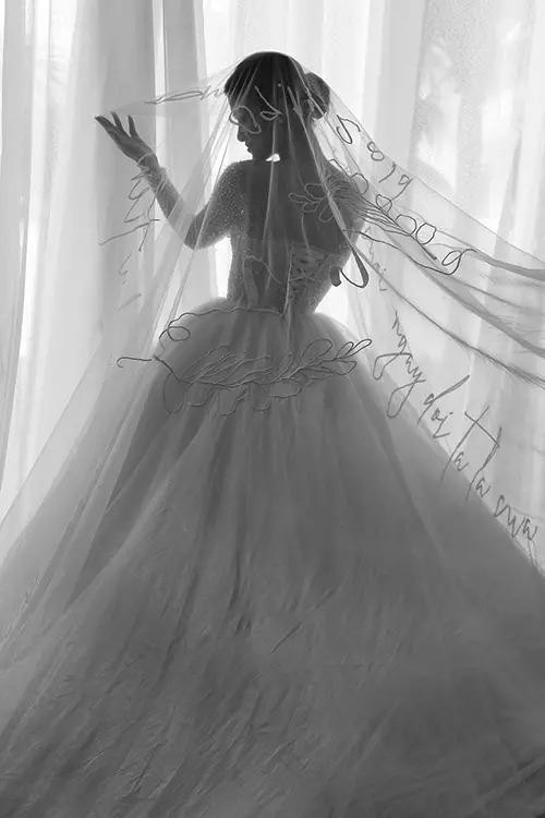Trong lễ cưới hoành tráng tổ chức tại Phú Quốc, ca sĩ Đông Nhi xuất hiện lộng lẫy với chiếc khăn voan dài tới 5 mét và thêu những điều có ý nghĩa đặc biệt trong chuyện tình của cô với Ông Cao Thắng. Đó là tên 7 bài hát mà hai vợ chồng từng hát chung, những con số ngày sinh của cô dâu, chú rể cũng như ngày cả hai chính thức hẹn hò, và tất nhiên không thể thiếu ngày cưới.