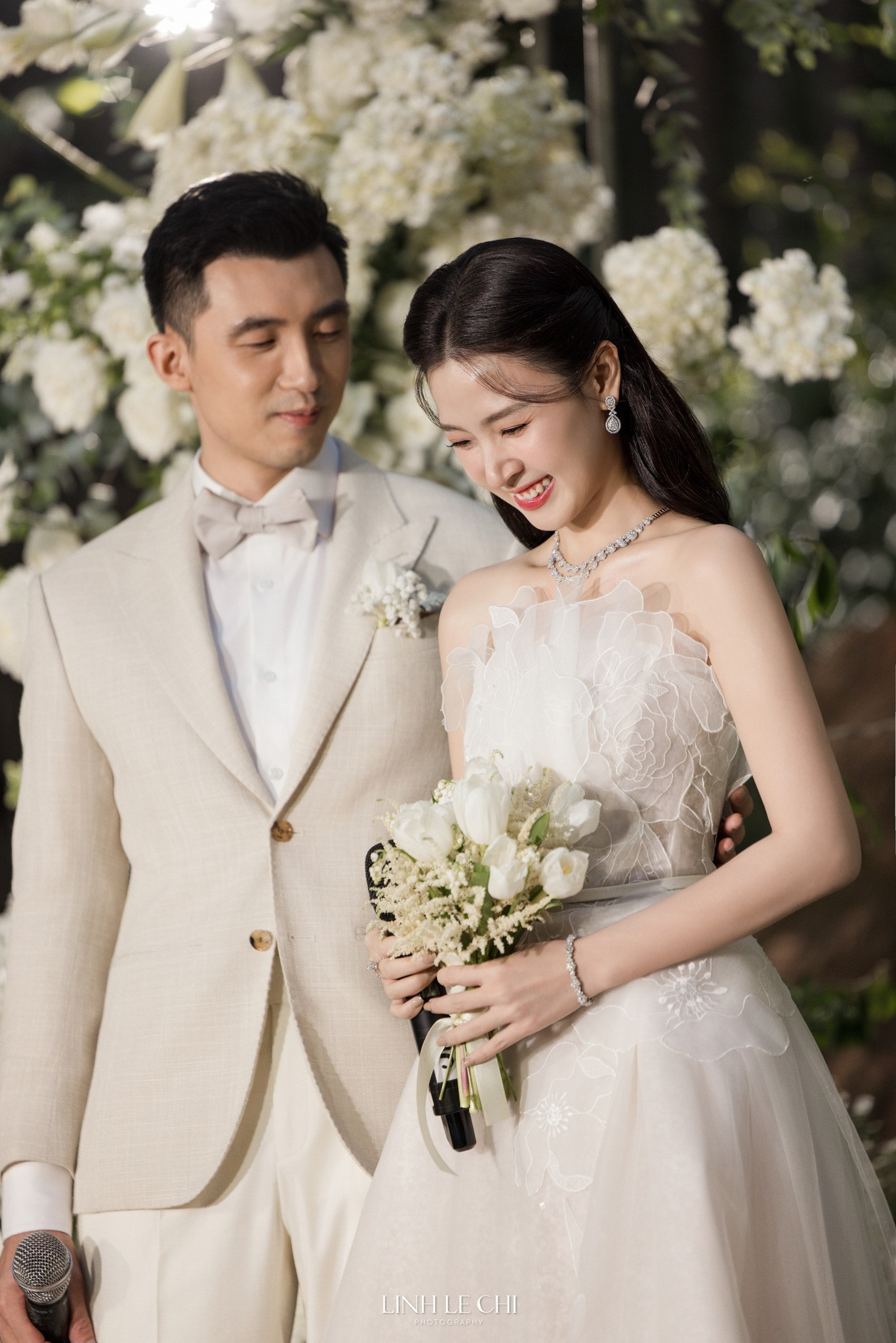 Khi biết về ý nghĩa của loài hoa calla lily, khán giả lại tíu tít khen Midu rất tinh tế khi gửi gắm nhiều thông điệp đến chú rể Minh Đạt qua bộ váy thanh nhã này. Bộ váy trắng mềm mại đã biến Midu thành một đóa hoa lộng lẫy, rất ăn ý với thiên nhiên xanh mướt xung quanh.