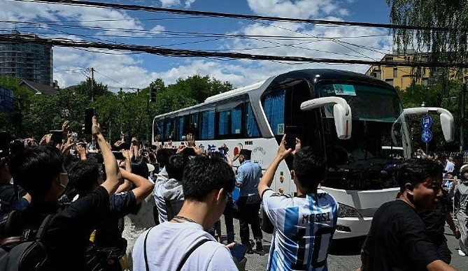 Sự có mặt của ĐT Argentina đang tạo nên cơn sốt chưa từng có ở Trung Quốc. Ngay từ khi đáp xuống sân bay Bắc Kinh vào ngày 10/6, Lionel Messi cùng đồng đội đã nhận được sự chào đón của hàng ngàn người hâm mộ. Tuy nhiên đám đông không thể tiếp cận siêu sao 35 tuổi bởi hộ tống anh là rất nhiều vệ sỹ cùng lực lượng an ninh.