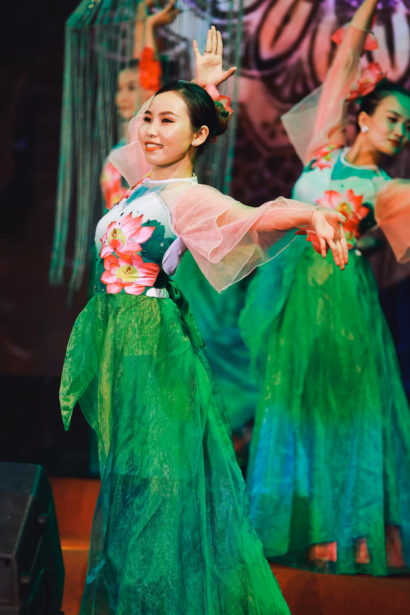 | Biểu diễn nghệ thuật với tạo hình hoa sen. Ảnh: Nguyễn Đình Chiến |