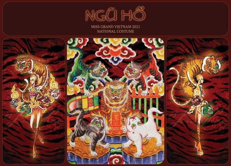 Thiết kế mang tên Ngũ Hổ oai phong, khí thế, đậm chất văn hóa. Màu sắc và tinh thần của mẫu thiết kế mang đậm tính dân tộc cùng với các hoạ tiết dân gian, chi tiết tinh xảo và công phu.