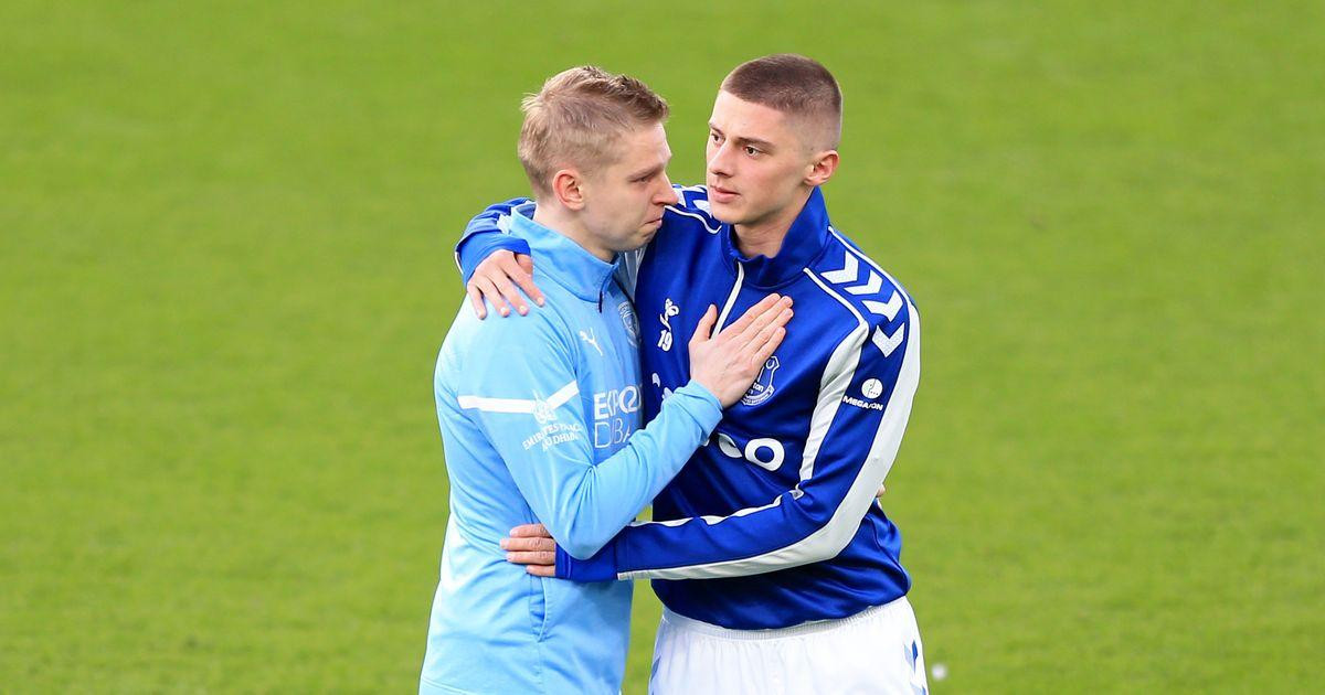 Trong lúc khởi động, Zinchenko đã tiến tới ôm lấy người đồng hương Mykolenko, tiền vệ trẻ đang khoác áo Everton. Hai cầu thủ người Ukraine này đã đứng bên nhau để chia sẻ nhiều điều. Các camera bắt được hình ảnh họ ôm nhau rất cảm xúc trong tiếng vỗ tay không ngớt từ trên khán đài và dường như cả hai đã khóc.