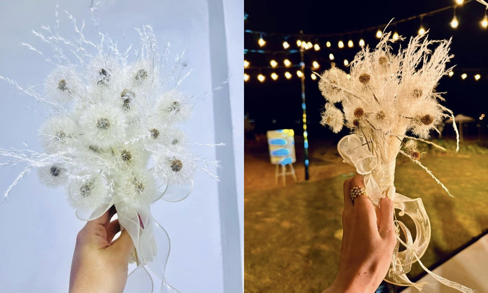 Biết là bồ công anh khó bảo quản, giá thành lại cao nhưng Puka vẫn muốn cầm trên tay bó hoa không giống ai. Đám cưới của Puka và Gin Tuấn Kiệt tổ chức bên bờ biển, nên mọi người càng lo lắng cho bó hoa cưới mỏng manh trước những cơn gió mạnh ngoài biển.