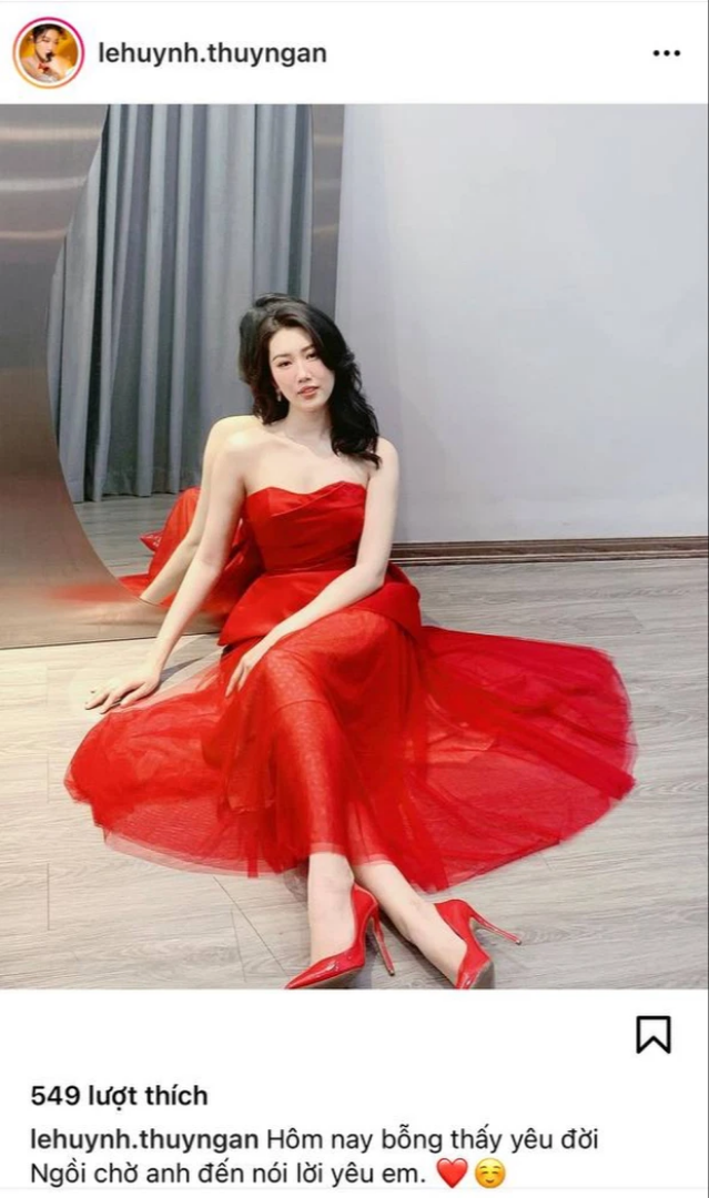 Vào tối 23/1, Thuý Ngân bất ngờ đăng ảnh diện váy dạ hội đỏ cực cuốn hút khoe vai trần quyến rũ. Bên cạnh những lời khen về nhan sắc đỉnh cao của cô nàng, một vài bình luận thể hiện sự quan tâm đặc biệt với màn "thả thính" ngọt lịm tim gửi ai kia: "Hôm nay bỗng thấy yêu đời ngồi chờ anh tới nói lời yêu em".
