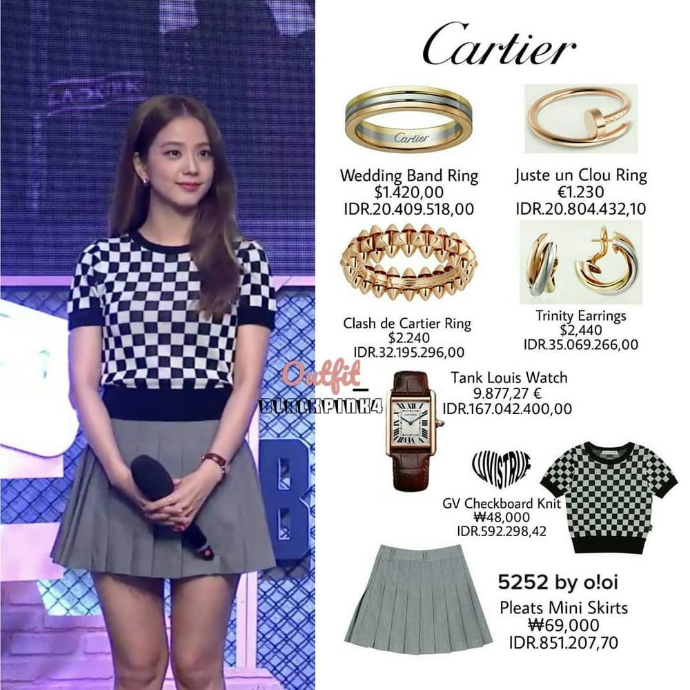 Trang phục của chị cả BLACKPINK không đắt đỏ nhưng bộ sưu tập trang sức Cartier lại giá trị hơn nhiều, lên đến 320 triệu đồng.