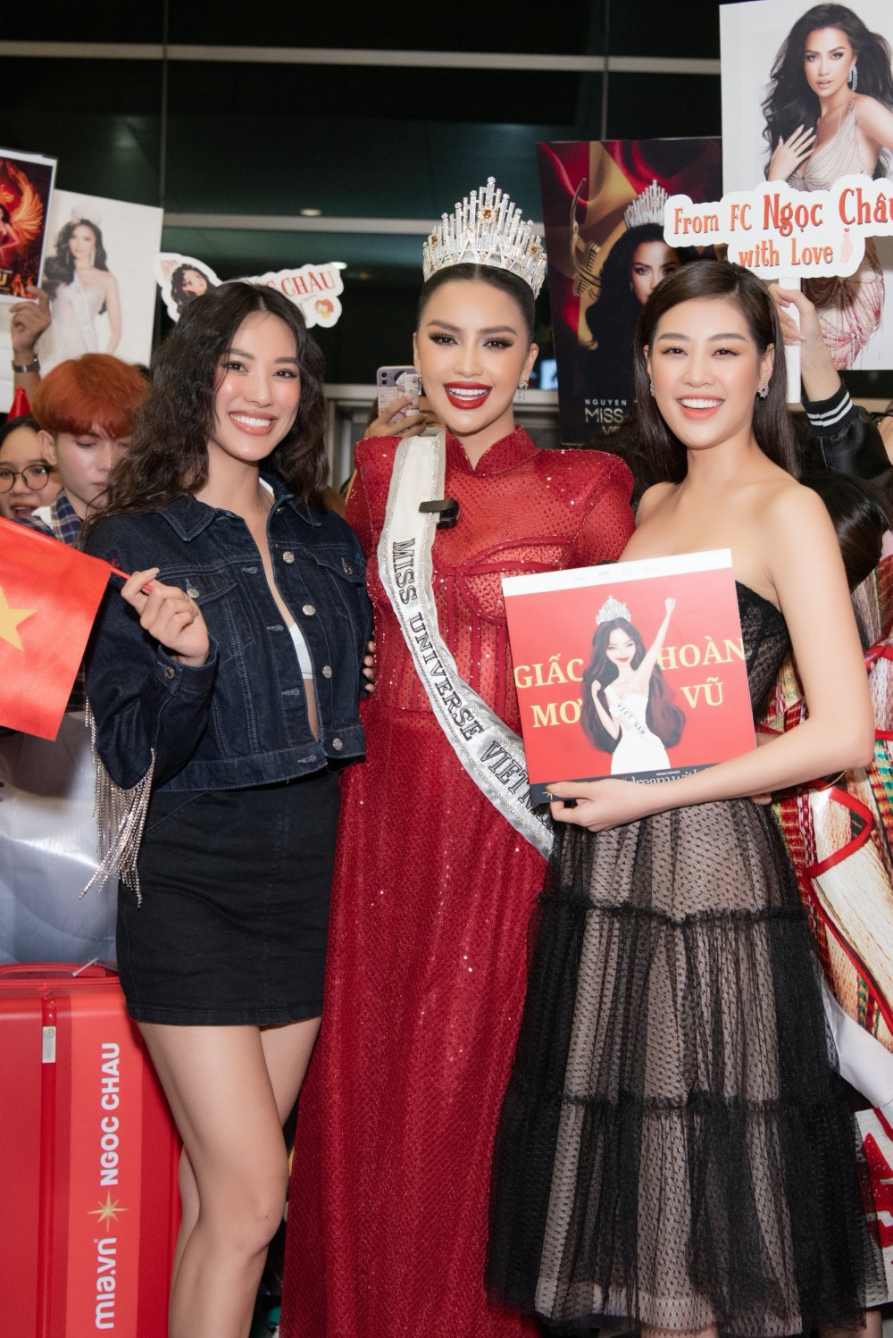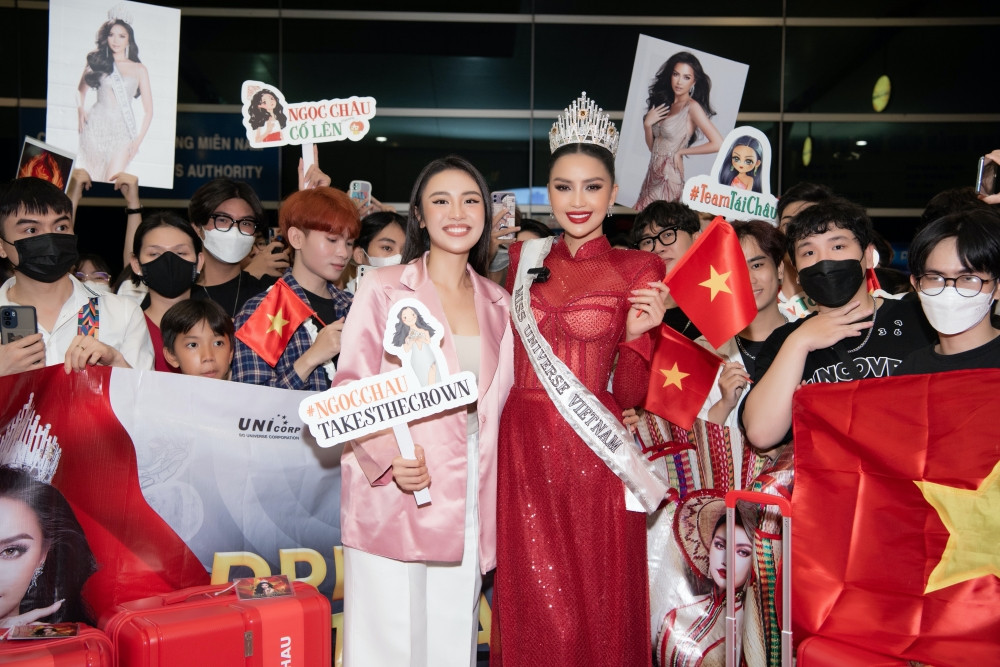 Á hậu Kim Duyên, Hoa hậu Khánh Vân cũng có mặt tại sân bay.