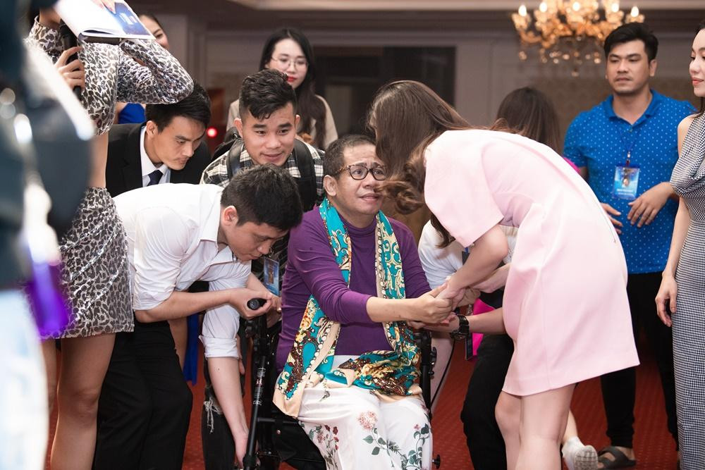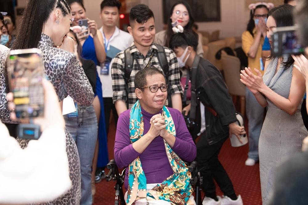 Vì vậy, hình ảnh vị huấn luyện viên xuất hiện trên chiếc xe lăn đã khiến 3 nàng học trò Đỗ Mỹ Linh, Lương Thuỳ Linh, Kiều Loan cũng như 'bà trùm Hoa hậu' Phạm Kim Dung, Tổng đạo diễn Hoàng Nhật Nam không kìm được nước mắt vì biến cố xót xa và những gì ông đã phải trải qua.