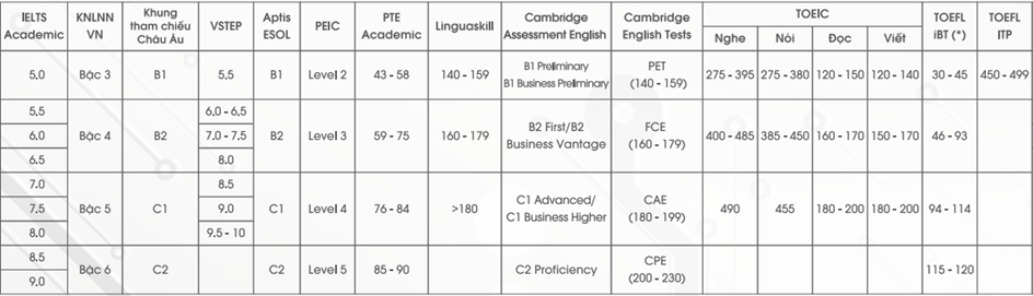 Quy định về các chứng chỉ tiếng Anh tương đương của ĐH Bách Khoa Hà Nội như sau: